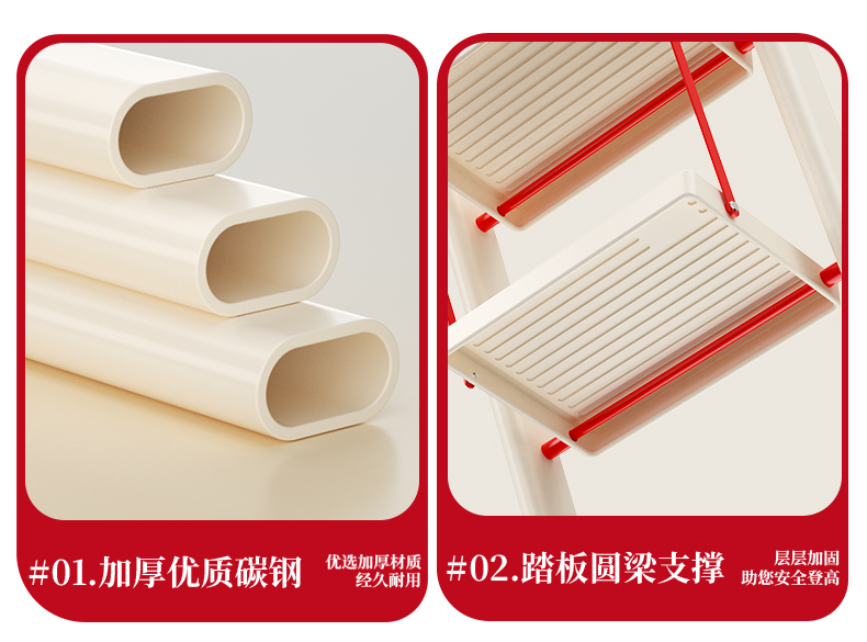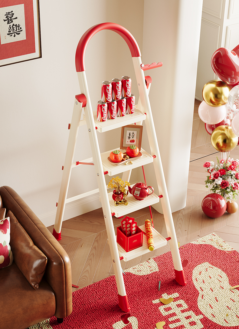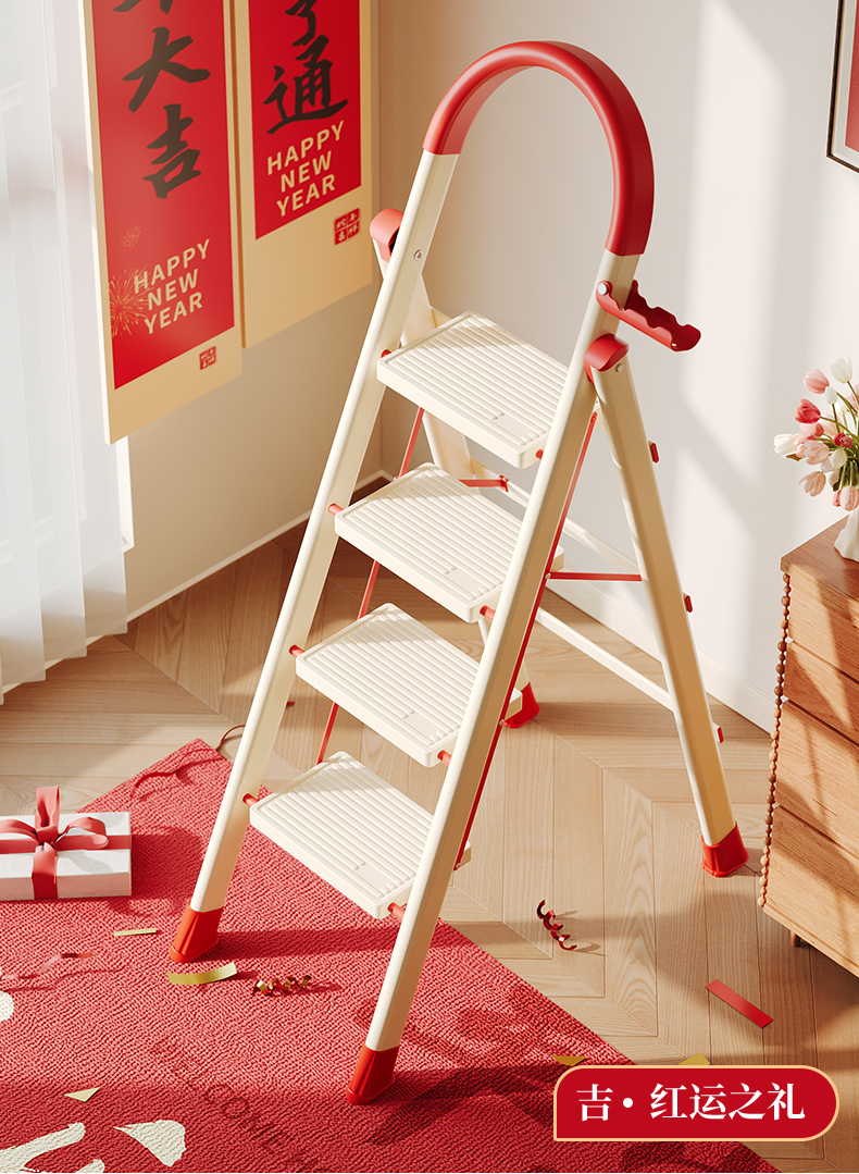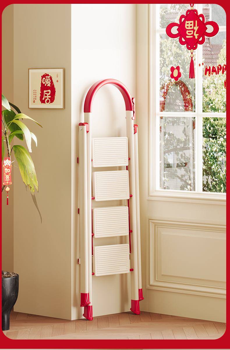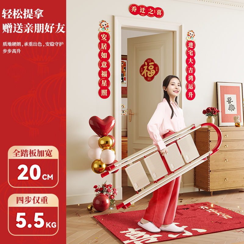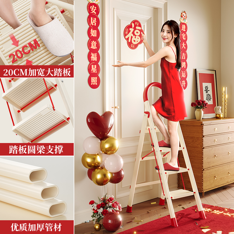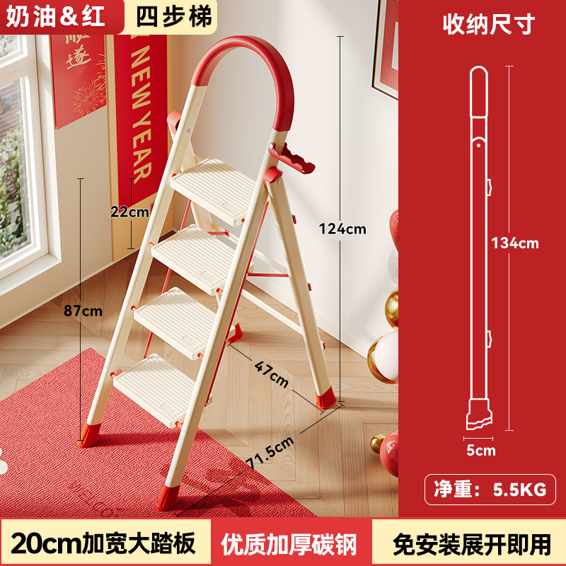 [new push] milky white red four step ladder full pedal widened 20cm