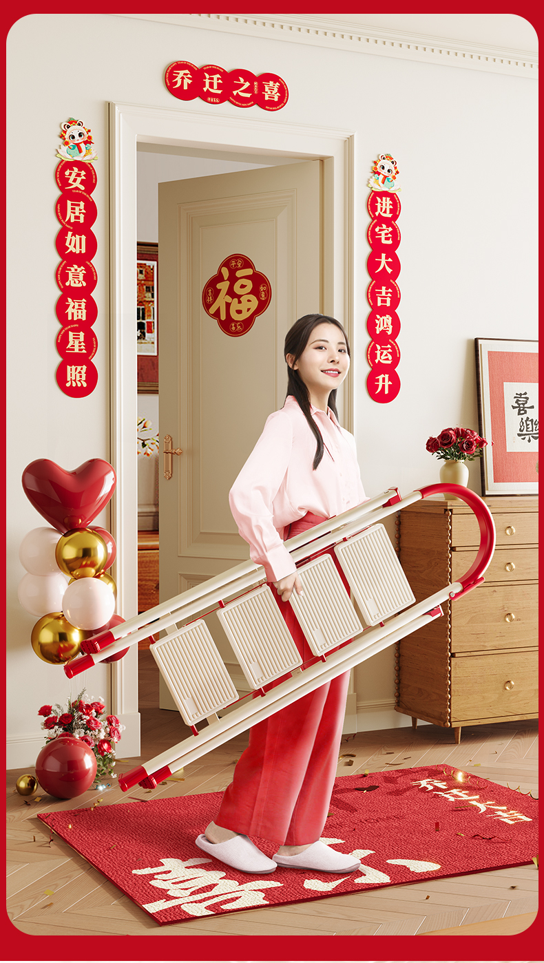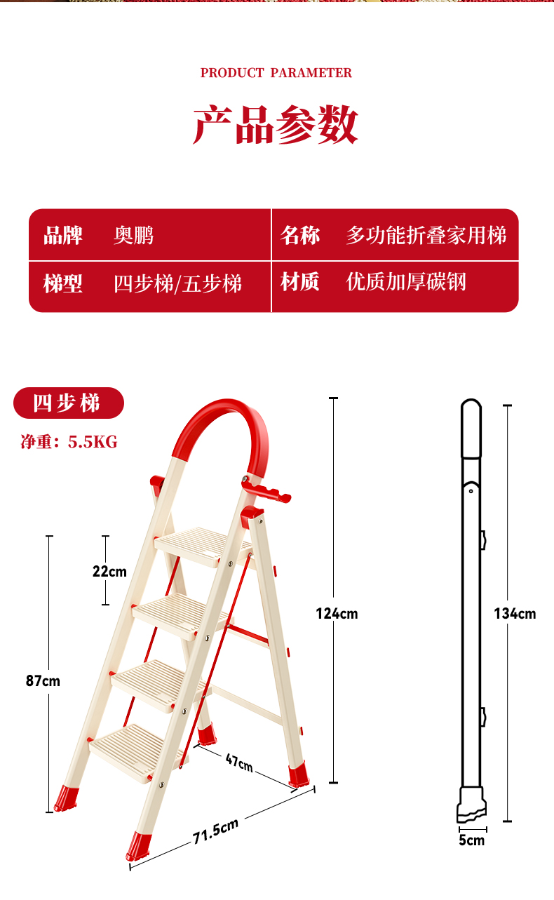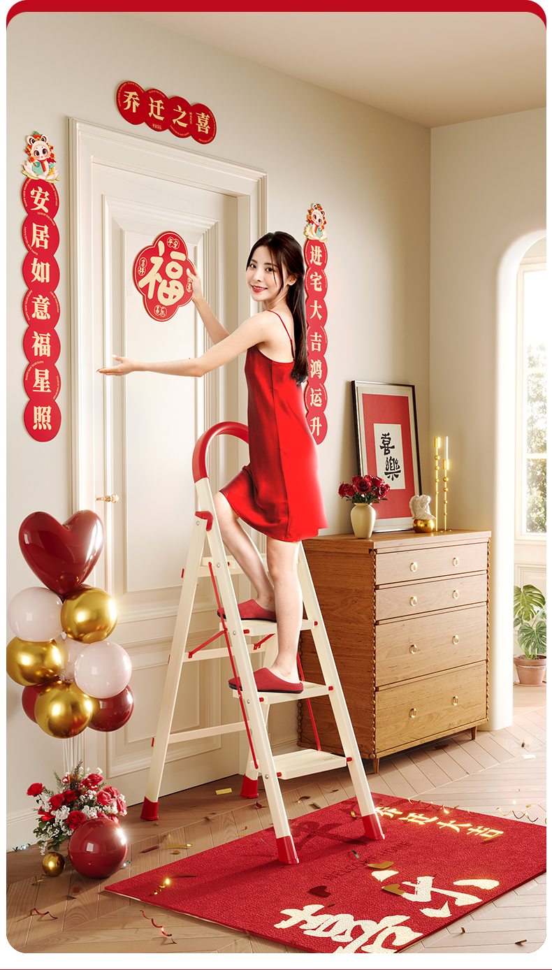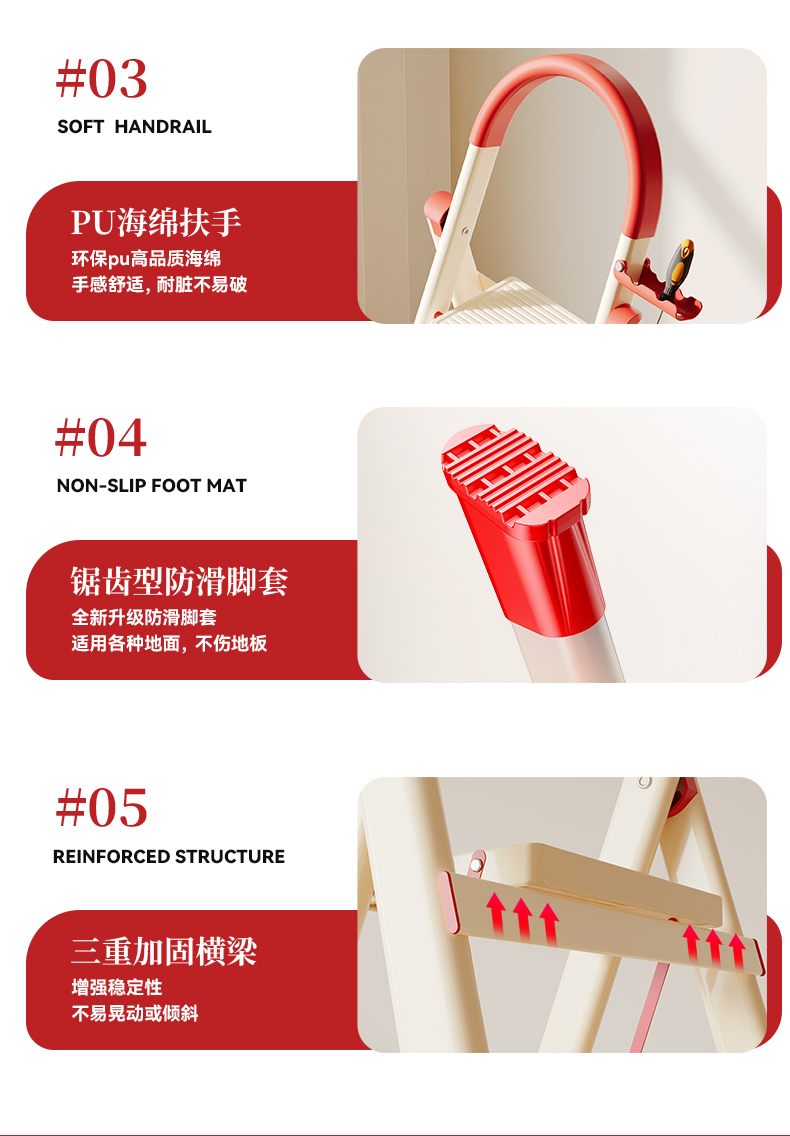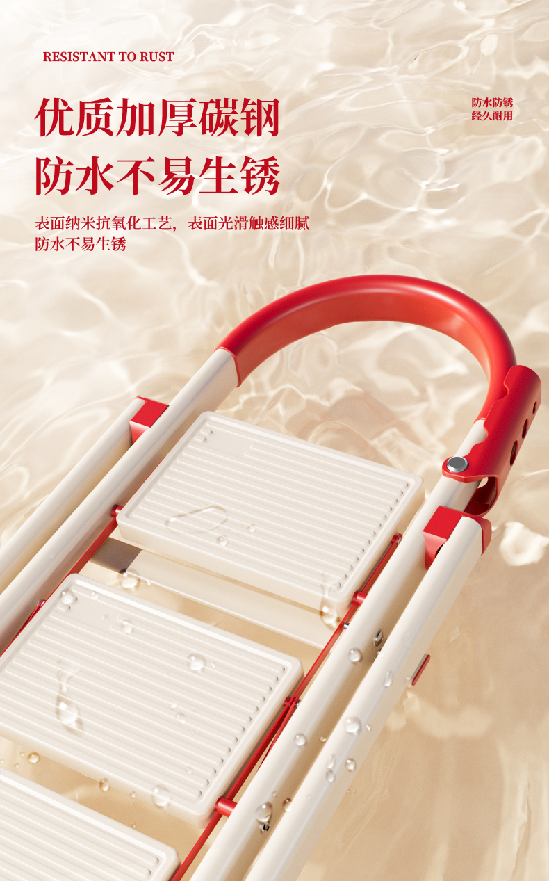 [new push] milky white red four step ladder full pedal widened 20cm