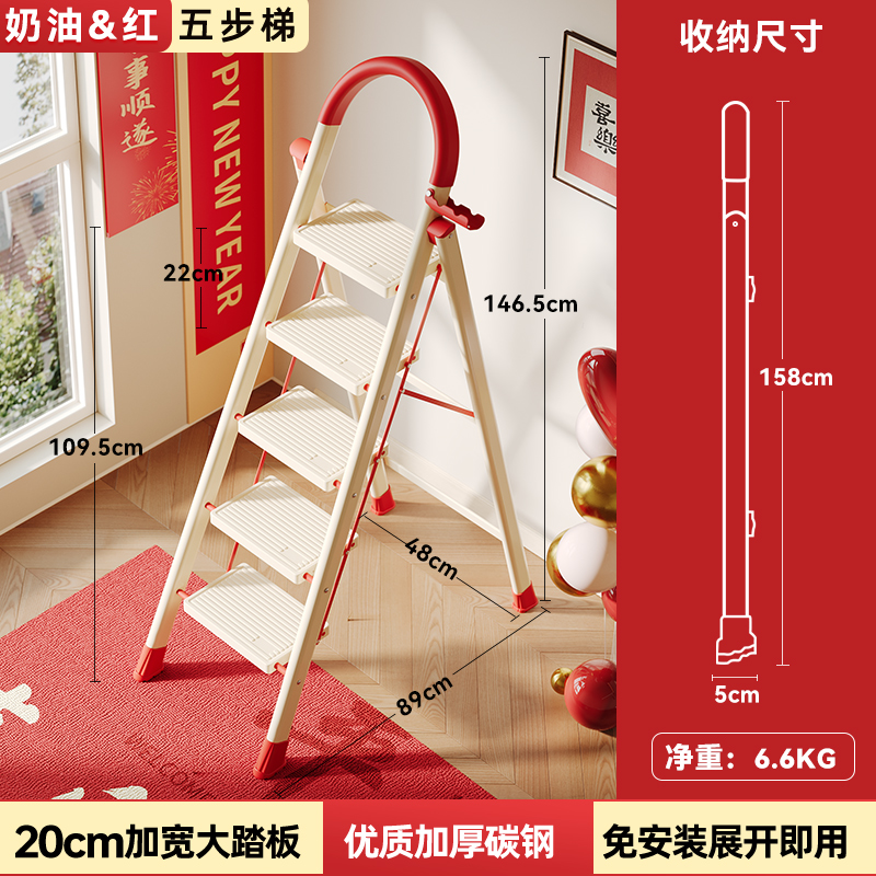 [new push] milk white red five-step ladder full pedal widened 20cm