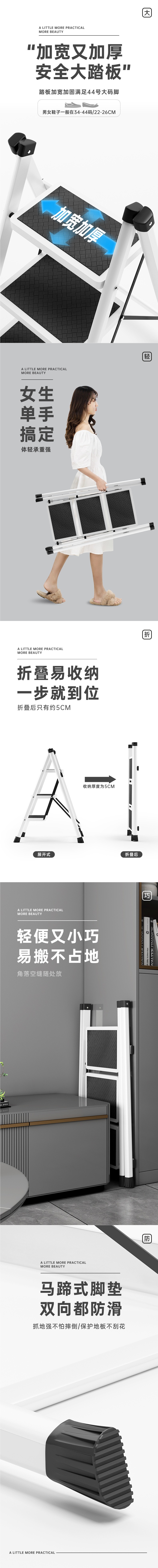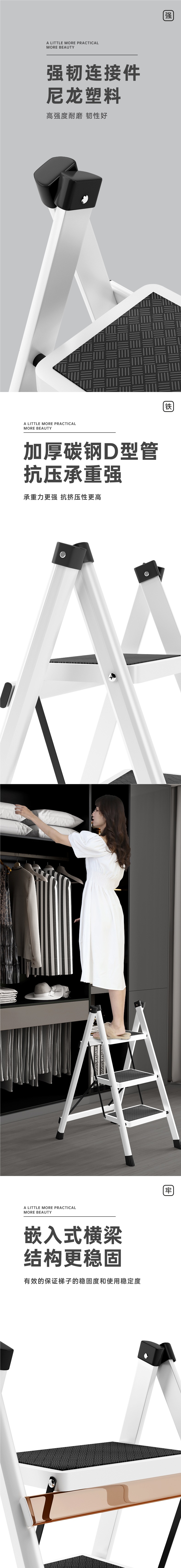 carbon steel headless white three-step ladder (with buckle)®