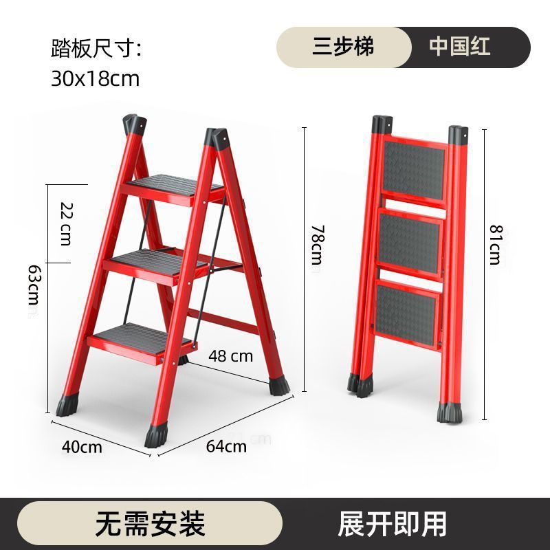 [upgraded and thickened] three-step ladder chinese red