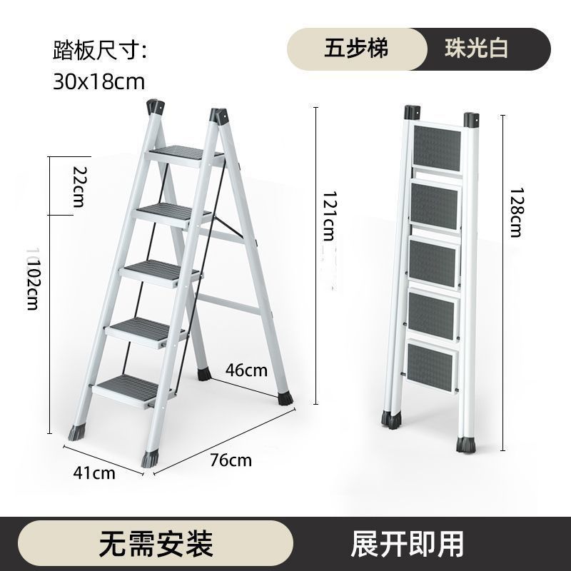 [upgraded thickened] five-step ladder pearl white
