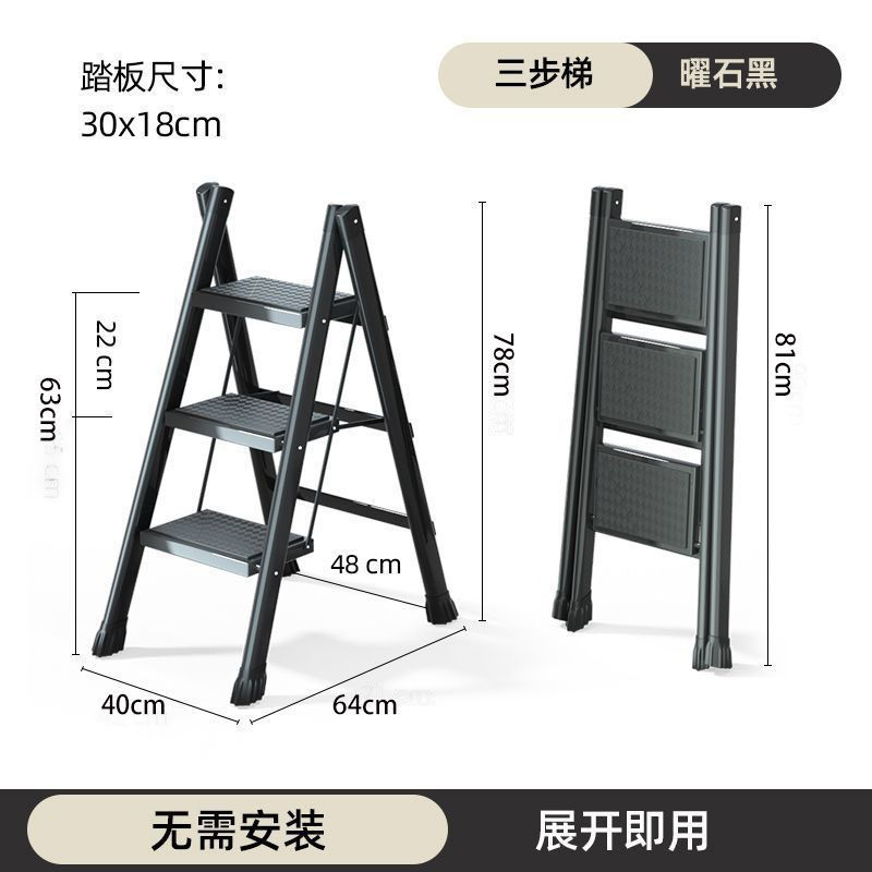 [upgraded and thickened] three-step ladder elegant black