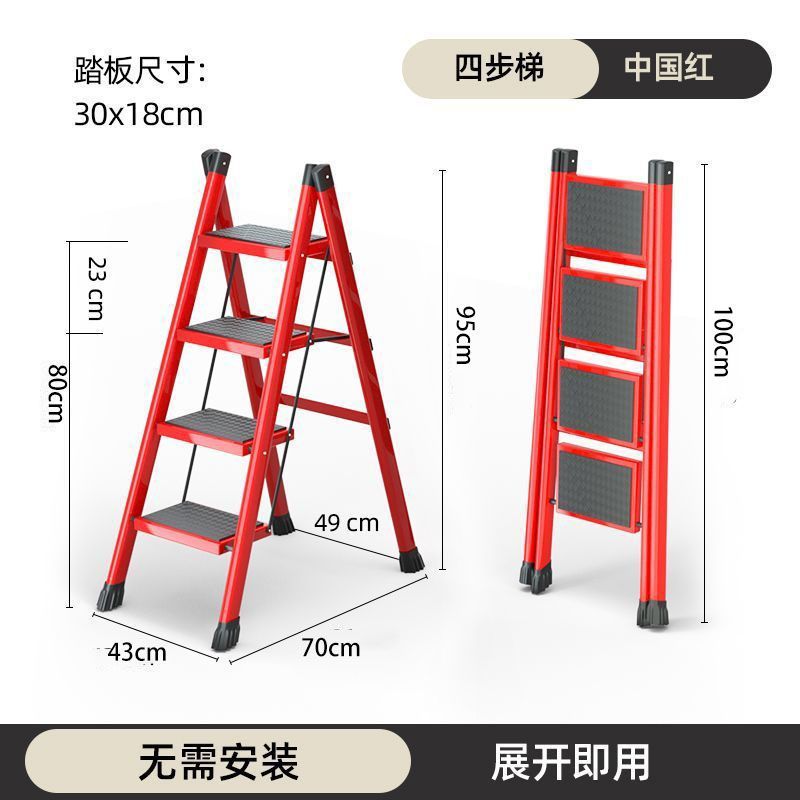 [upgraded and thickened] four-step ladder chinese red