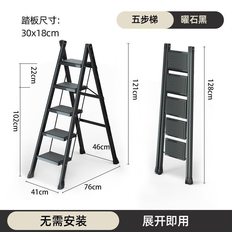 [upgraded and thickened] five-step ladder elegant black
