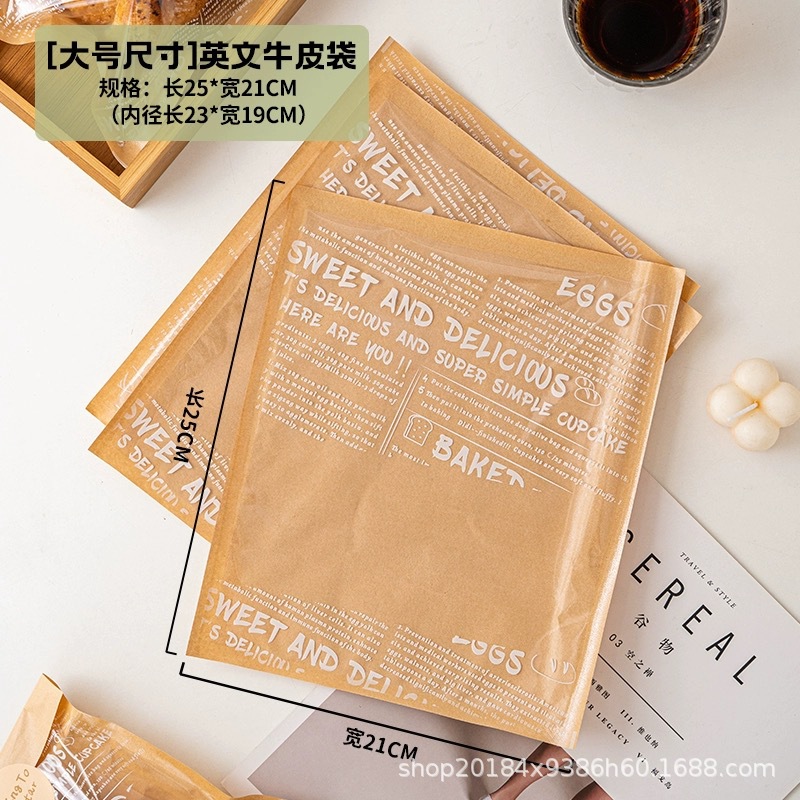 english oil-proof wrapping paper bag medium size; 100 pieces per pack