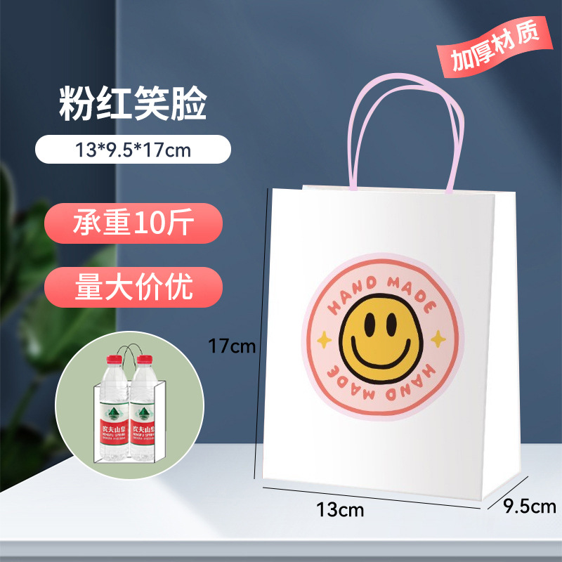 pink smiley face; white cowhide; small gift bag 13*9.5*17