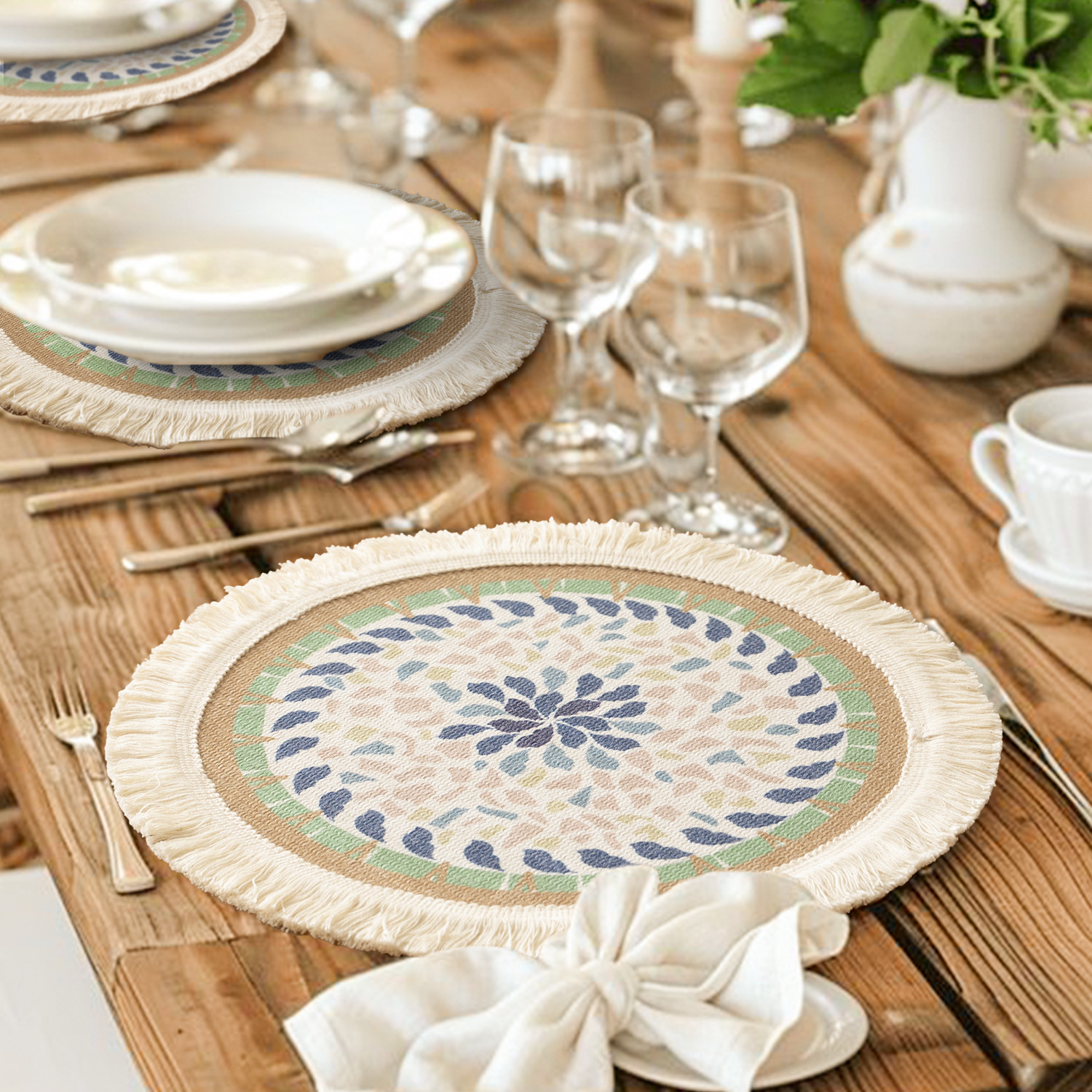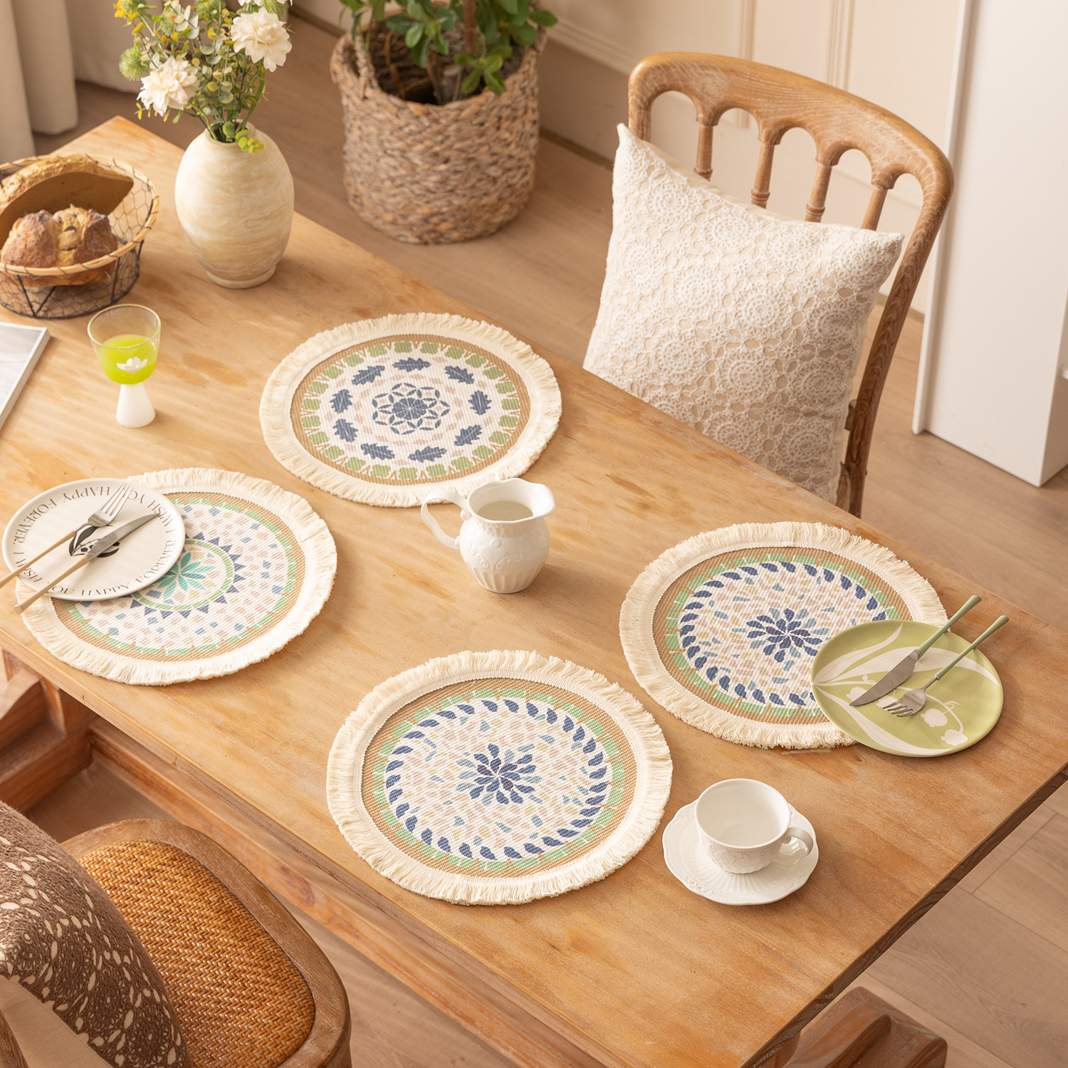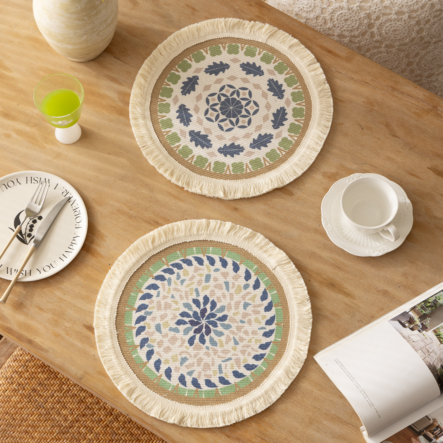 nordic style good-looking woven cotton insulation placemat fabric woven anti-scald mat coasters casserole mat teacup mat