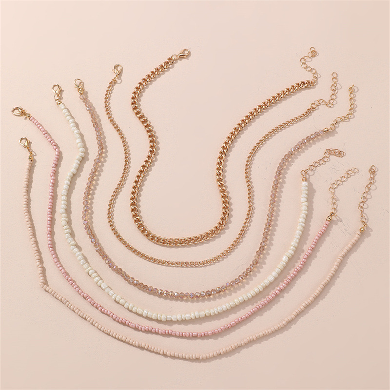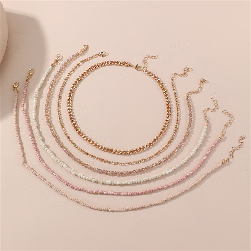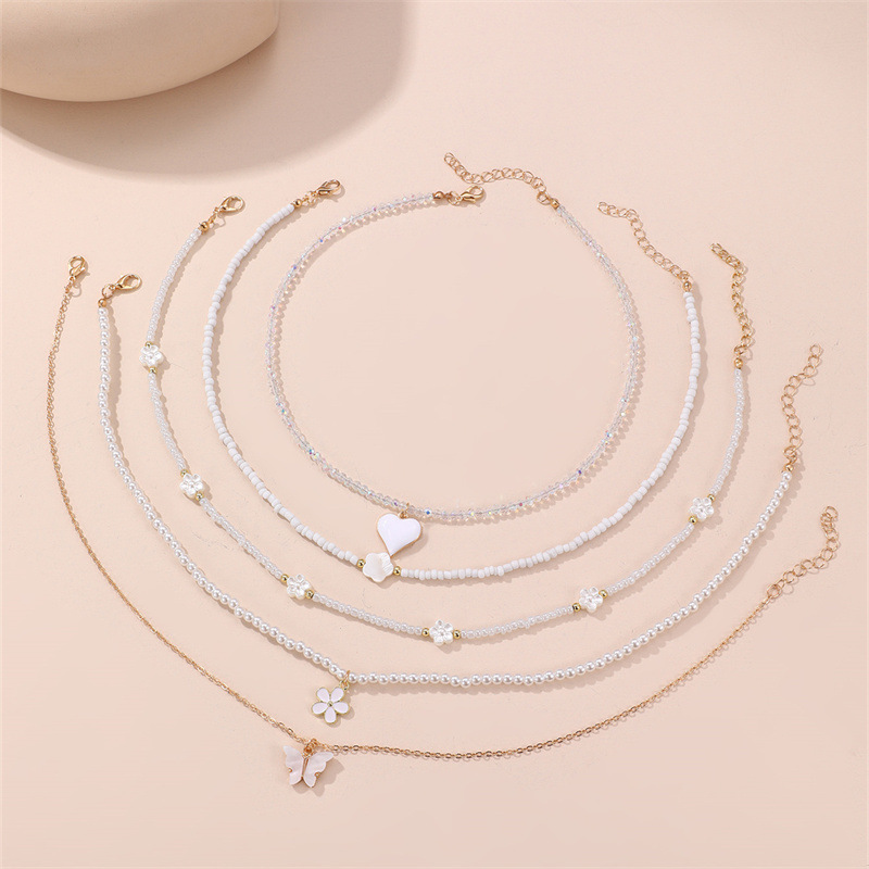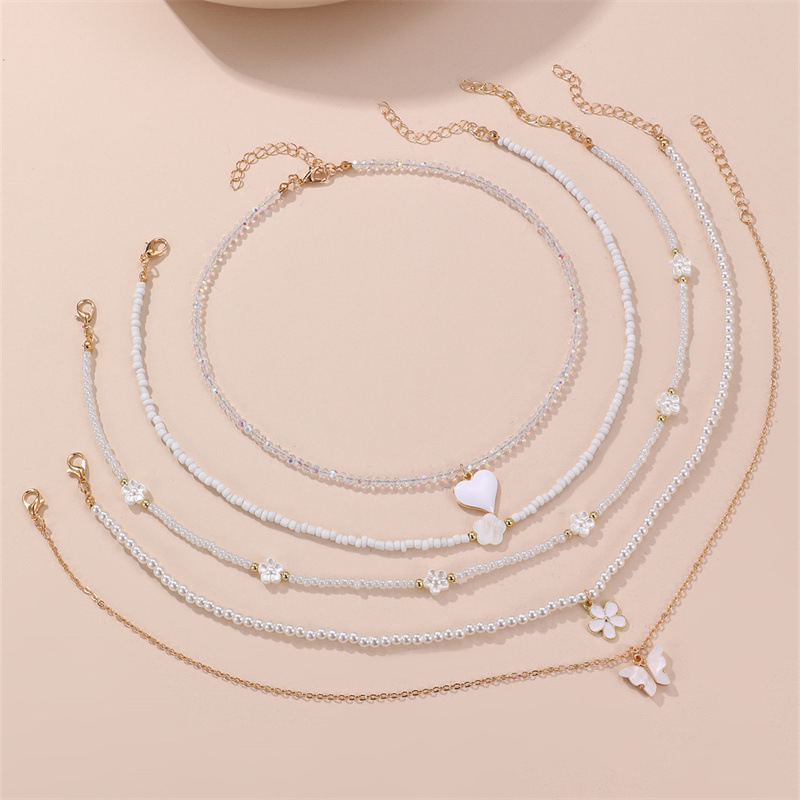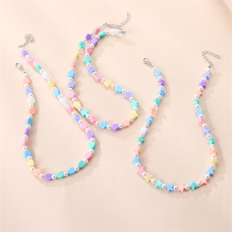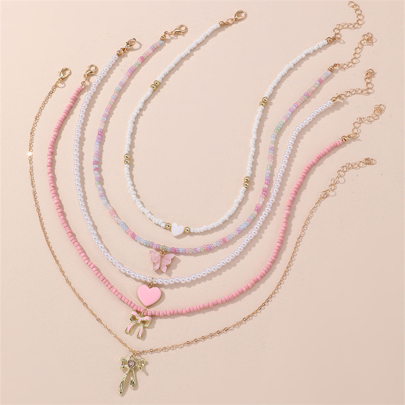 cross-border new arrival jewelry bow pendant rice-shaped beads stringed beads color matching children's necklace simple color necklace clavicle chain