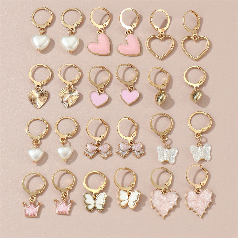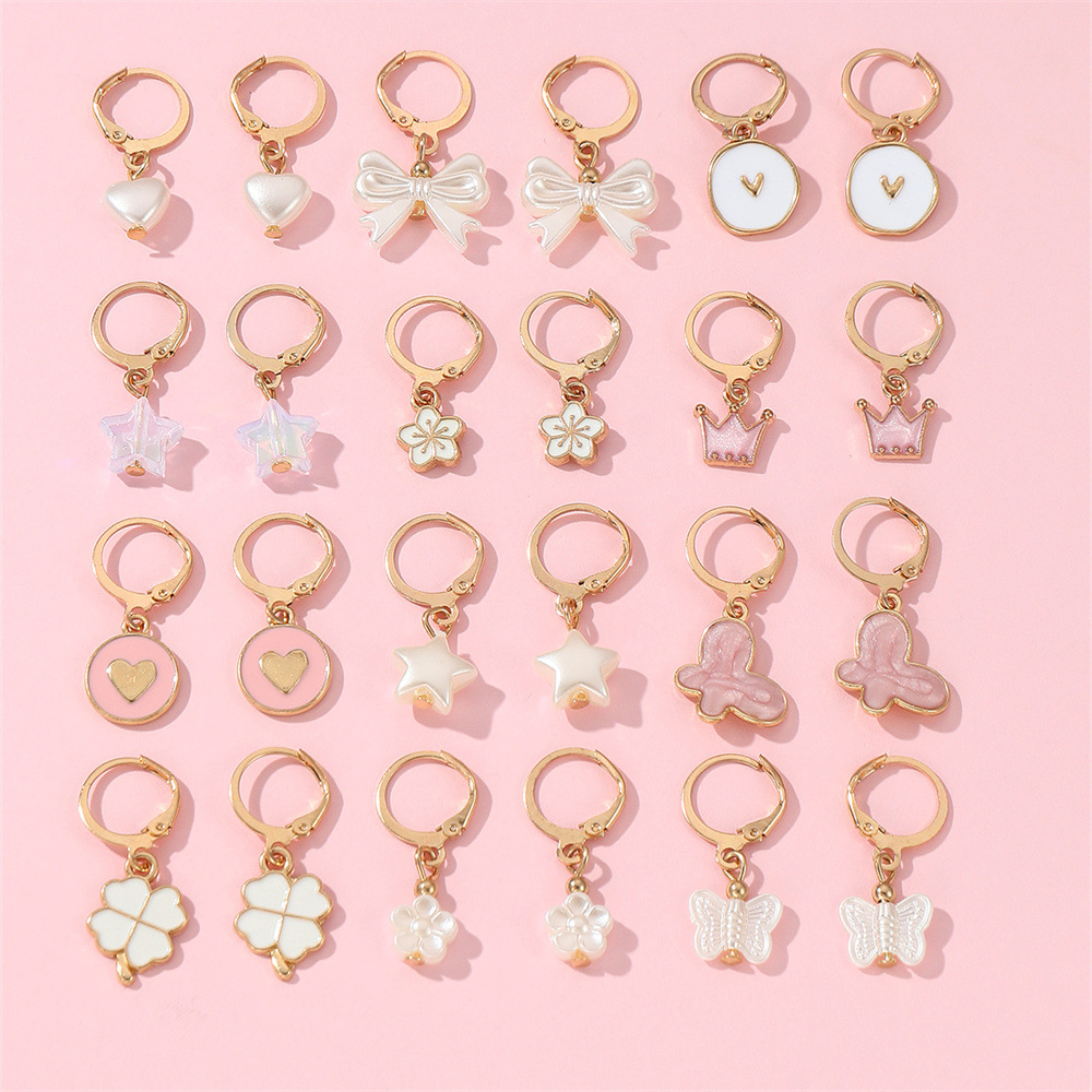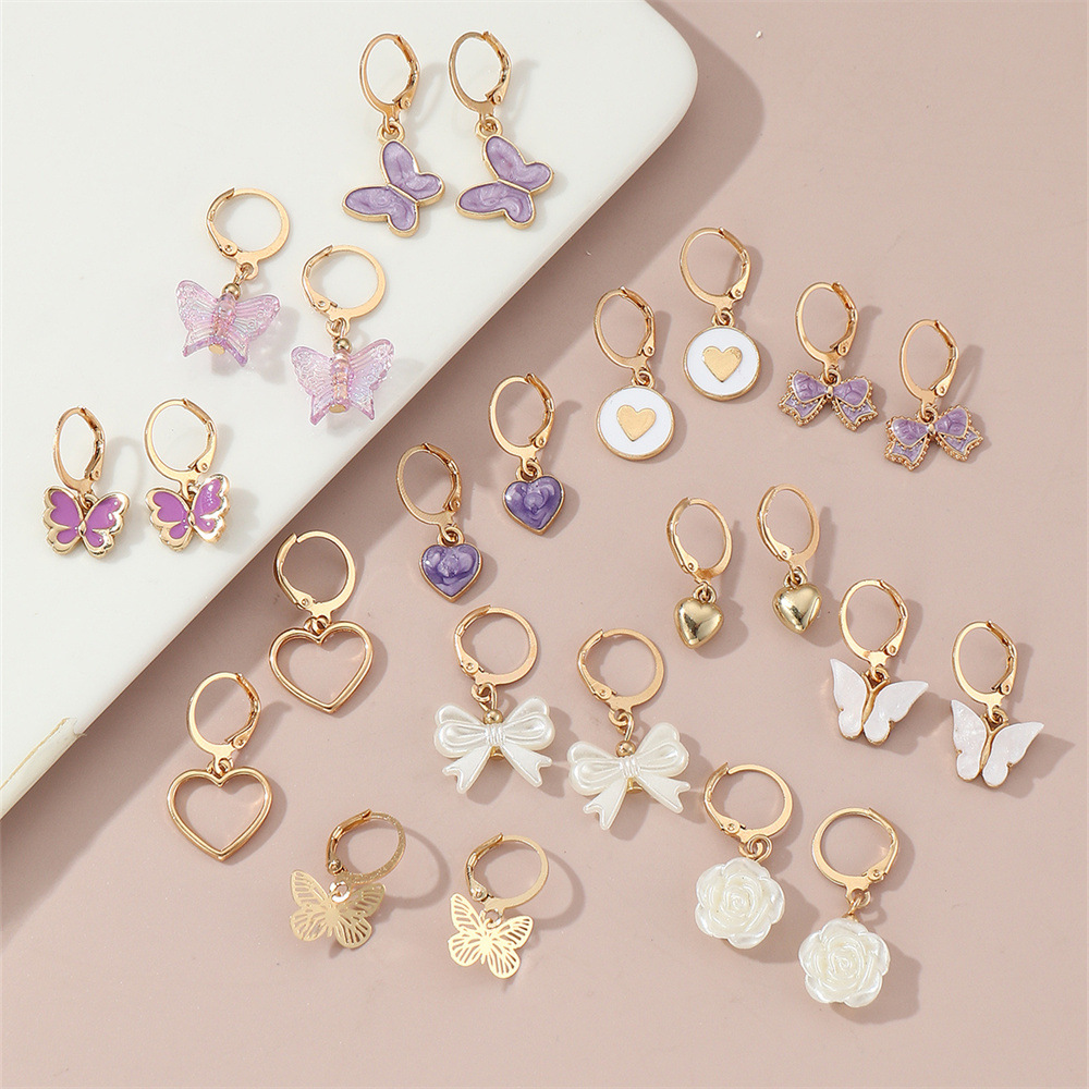 cross-border european and american children's earrings suit new butterfly love heart flowers resin pendant cute girl ear rings
