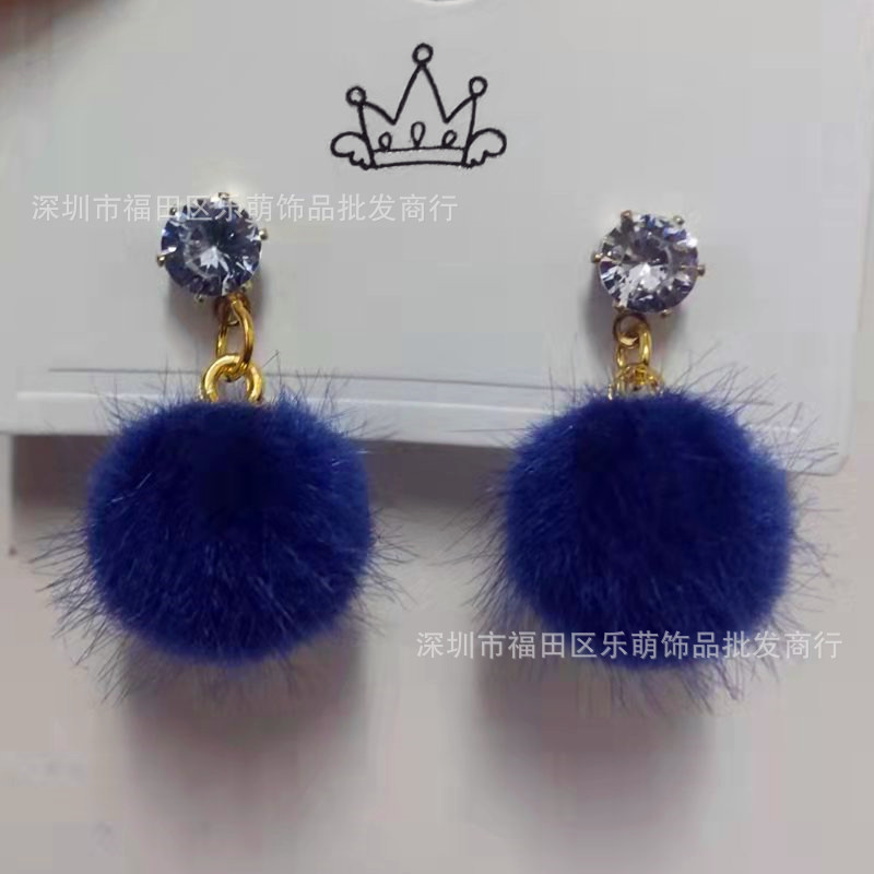 wool ball ear studs children adult earrings cute girl ear jewelry