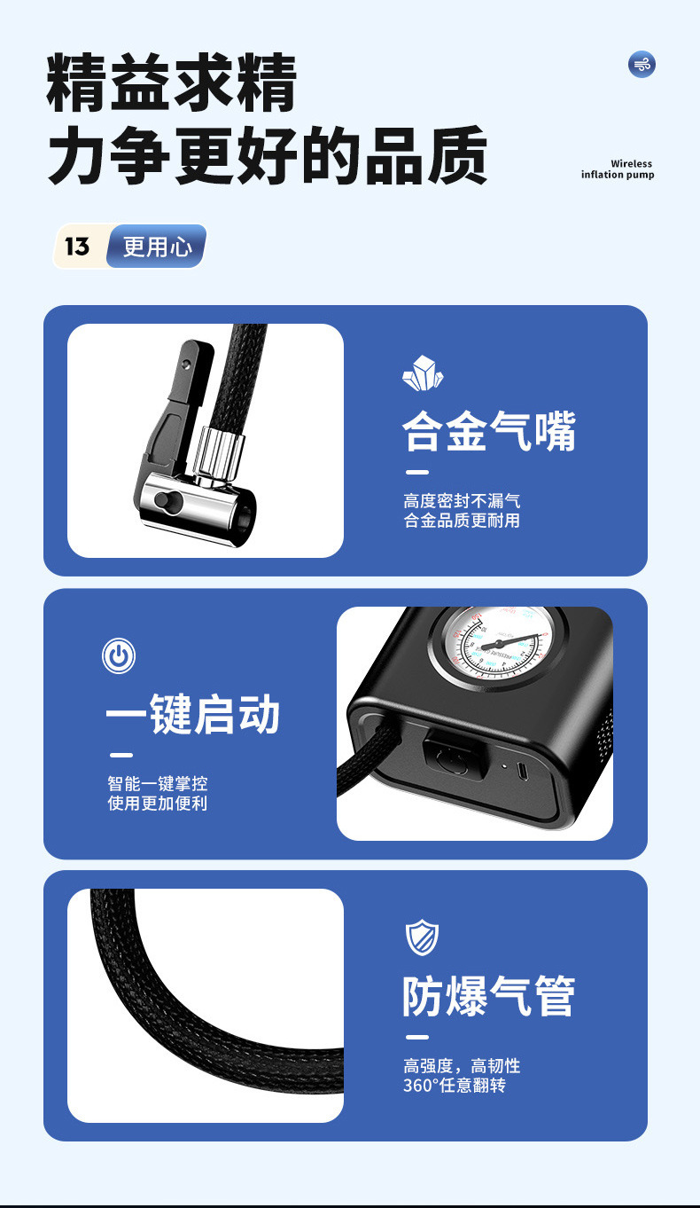 foreign trade exclusive for smart car portable air pump tire air pump wireless electric vehicle car air pump