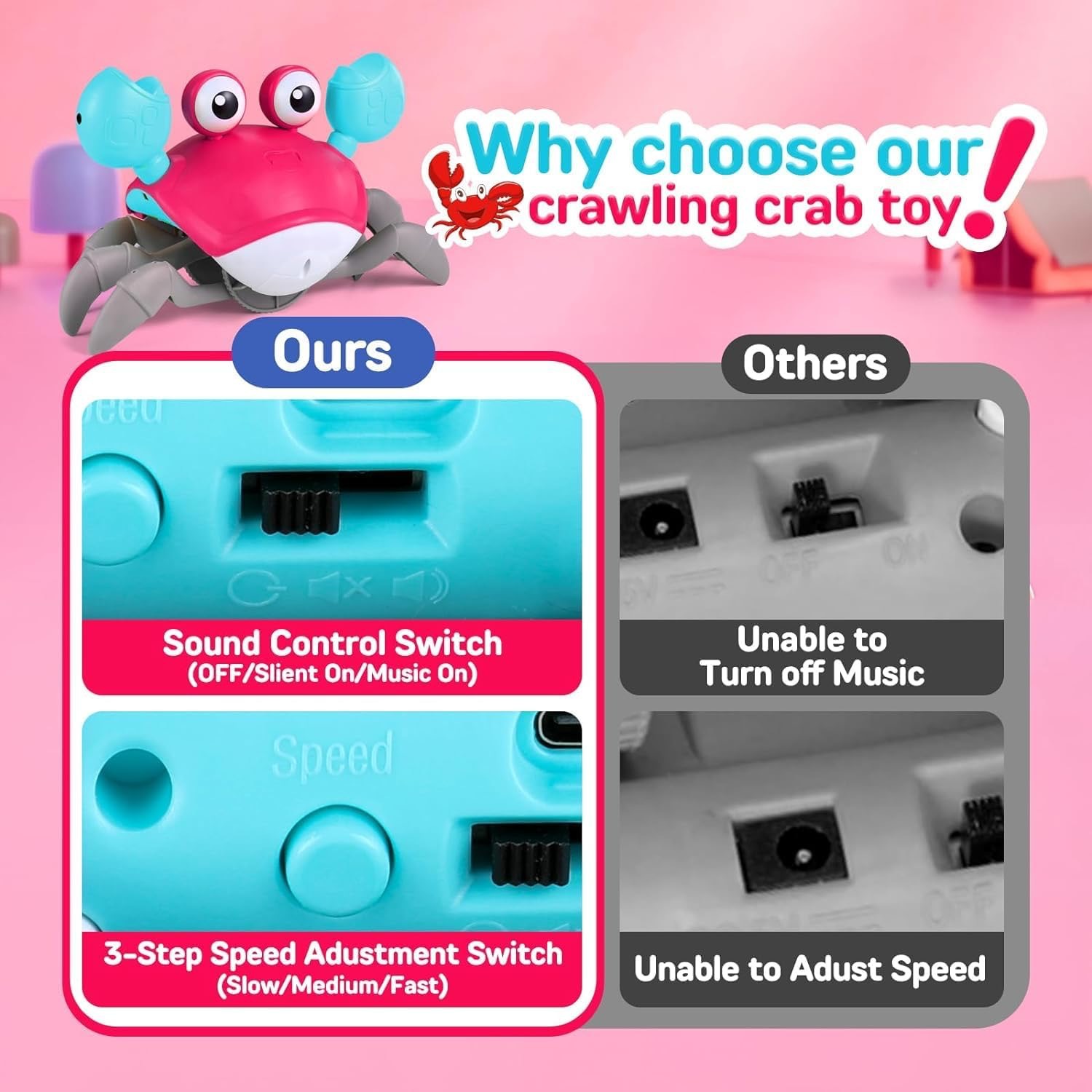 upgraded induction crab [adjustable speed + charging] rose red (english)