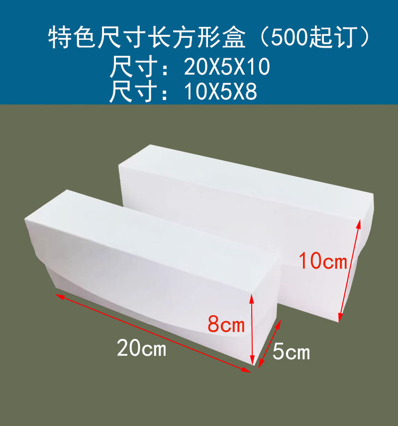 white; (special size 1000 minimum order) rectangular 20x5x10; paper