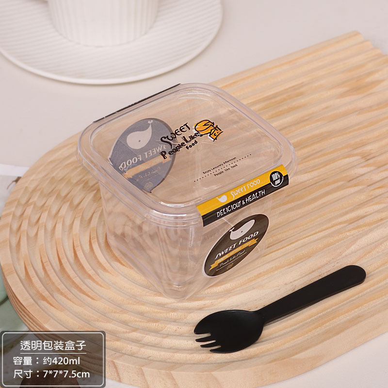 as shown in the figure; box + mango sticker + spork; pet