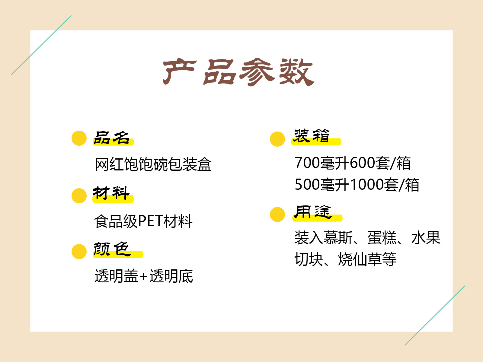 700ml box (600 sets for the whole box); transparent; pet