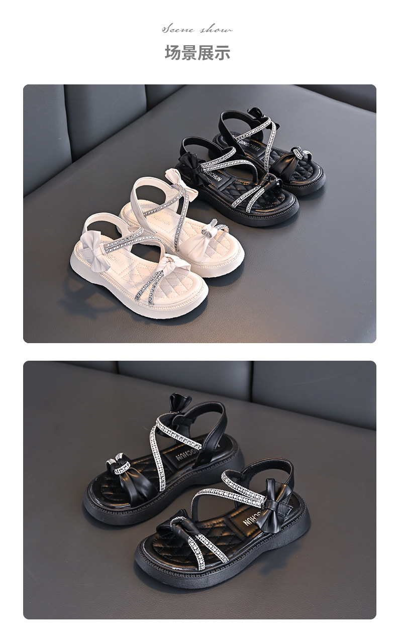 girls' shoes children's princess sandals crystal 2025 new summer summer little girl medium and big children western style soft bottom