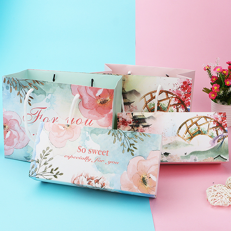 pink and blue flower handbag * white card