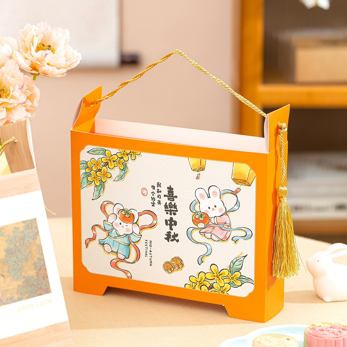 support enterprise customization; tassel portable joy mid-autumn festival; 350g white card