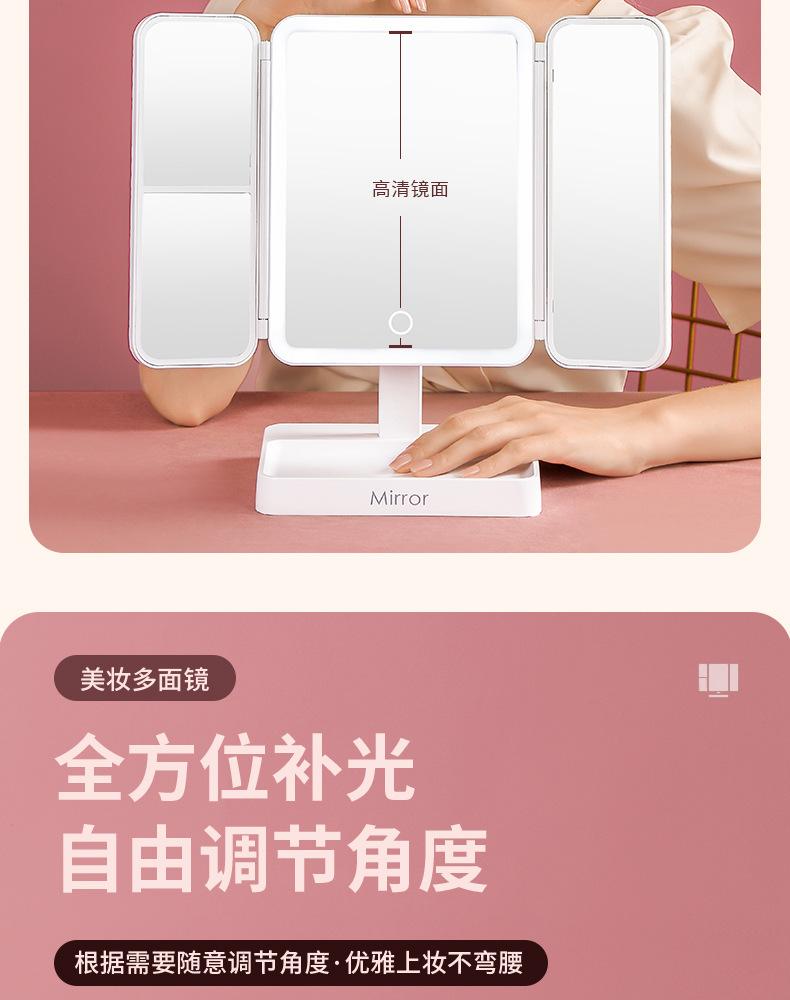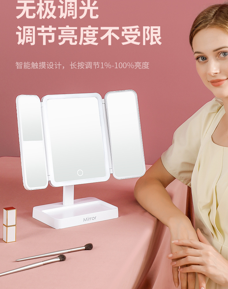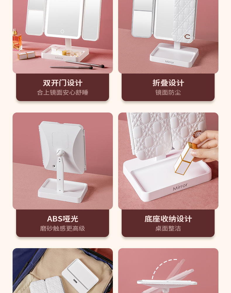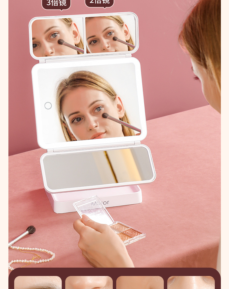 portable make-up mirror multifunctional led light cosmetic mirror home dormitory foldable shell mirror advanced sense for girls