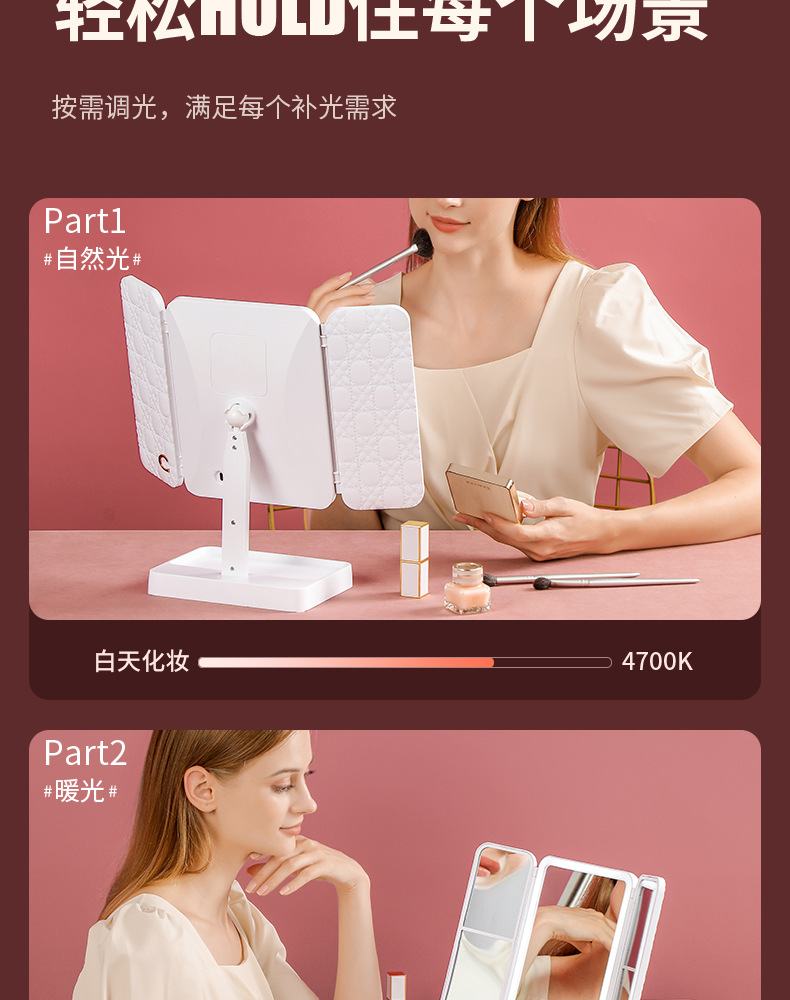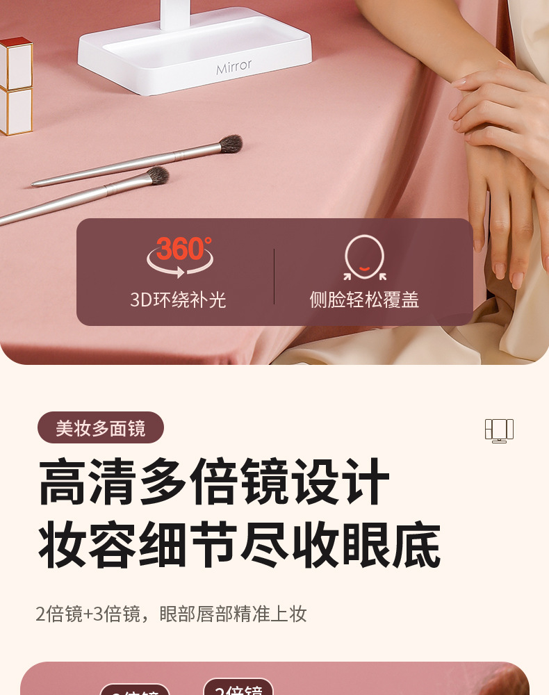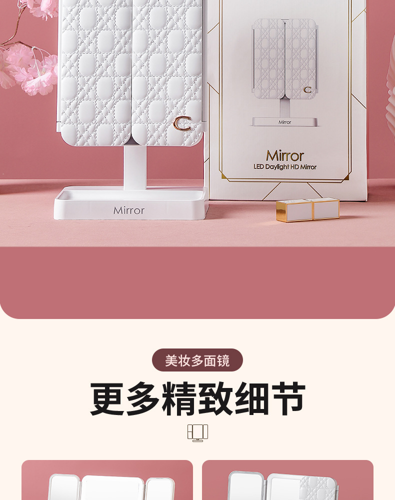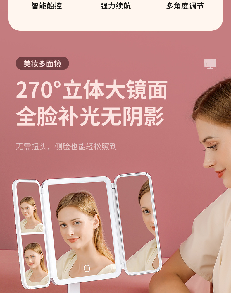 portable make-up mirror multifunctional led light cosmetic mirror home dormitory foldable shell mirror advanced sense for girls