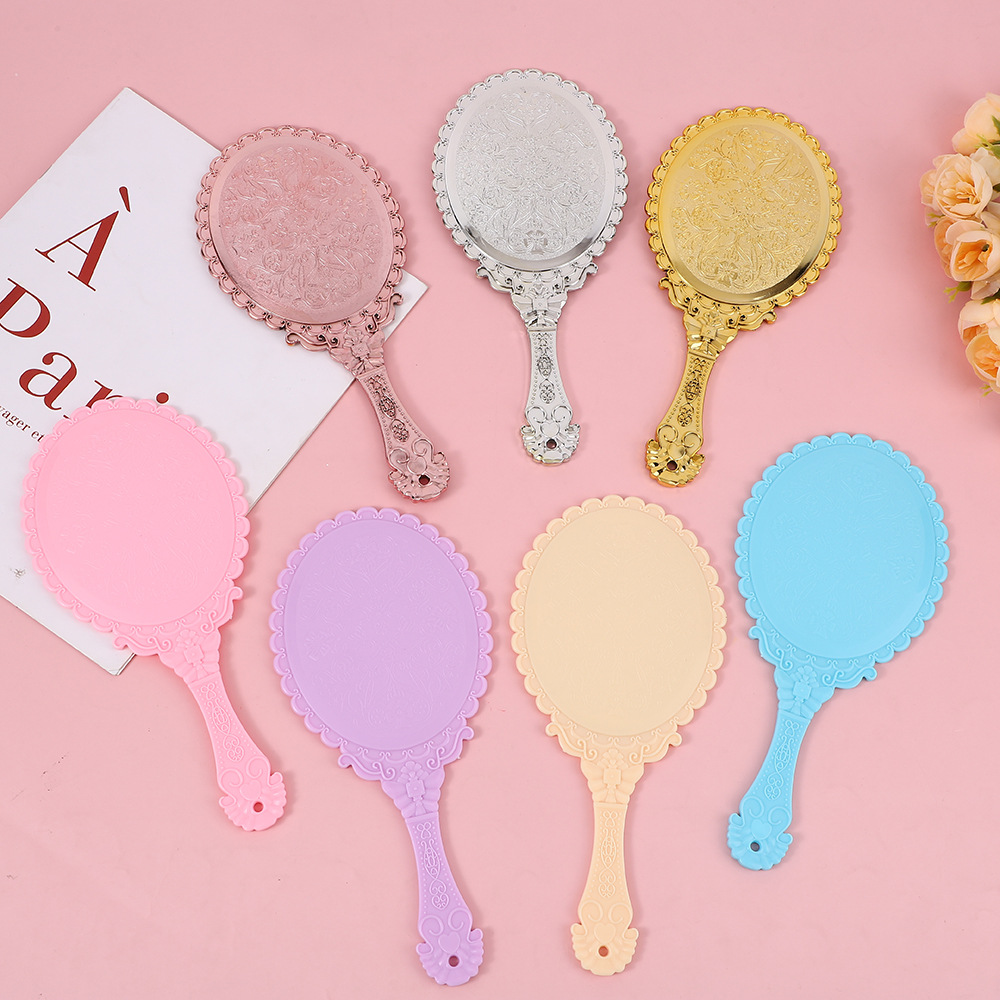 creative retro hand-hold mirror large rose gold hd handheld makeup mirror portable portable lace mirror pattern mirror