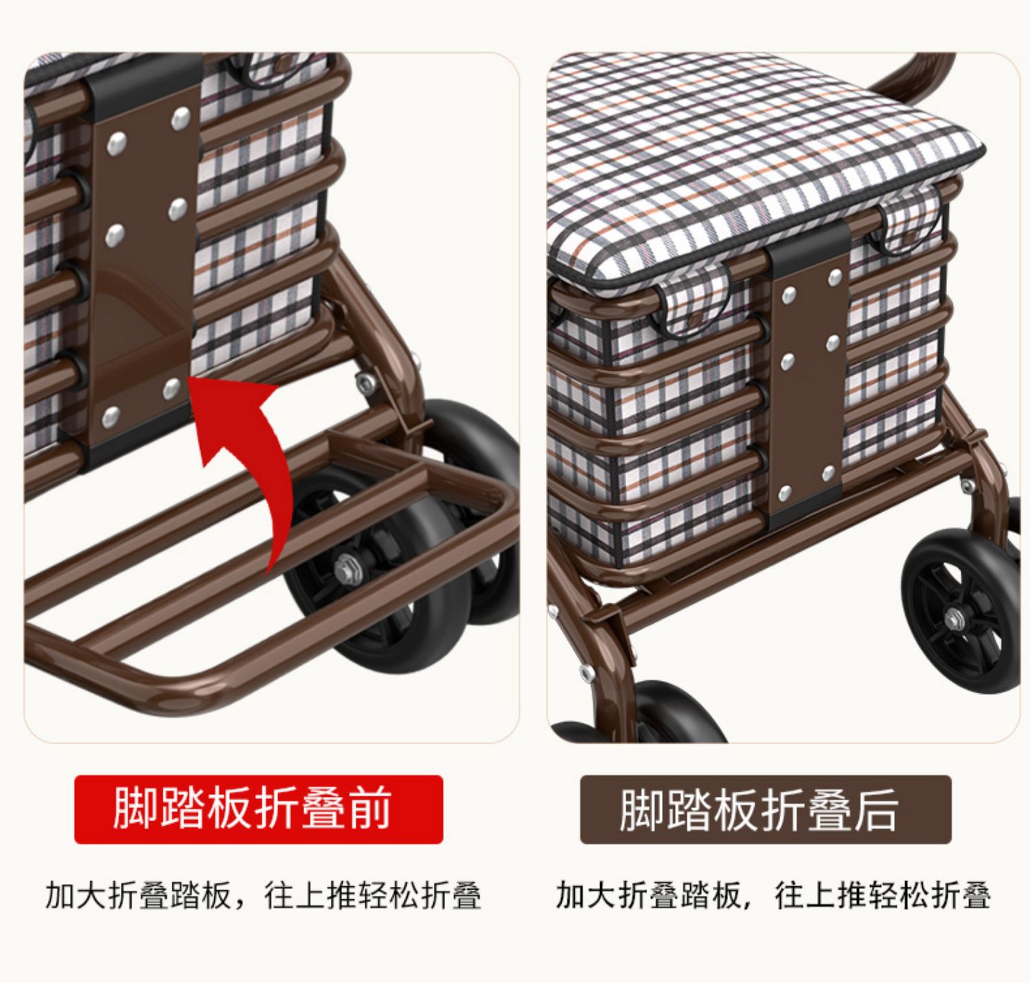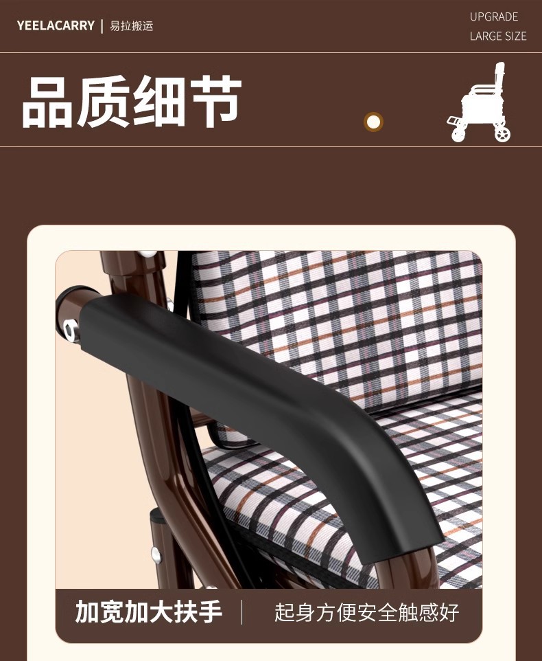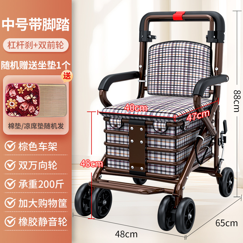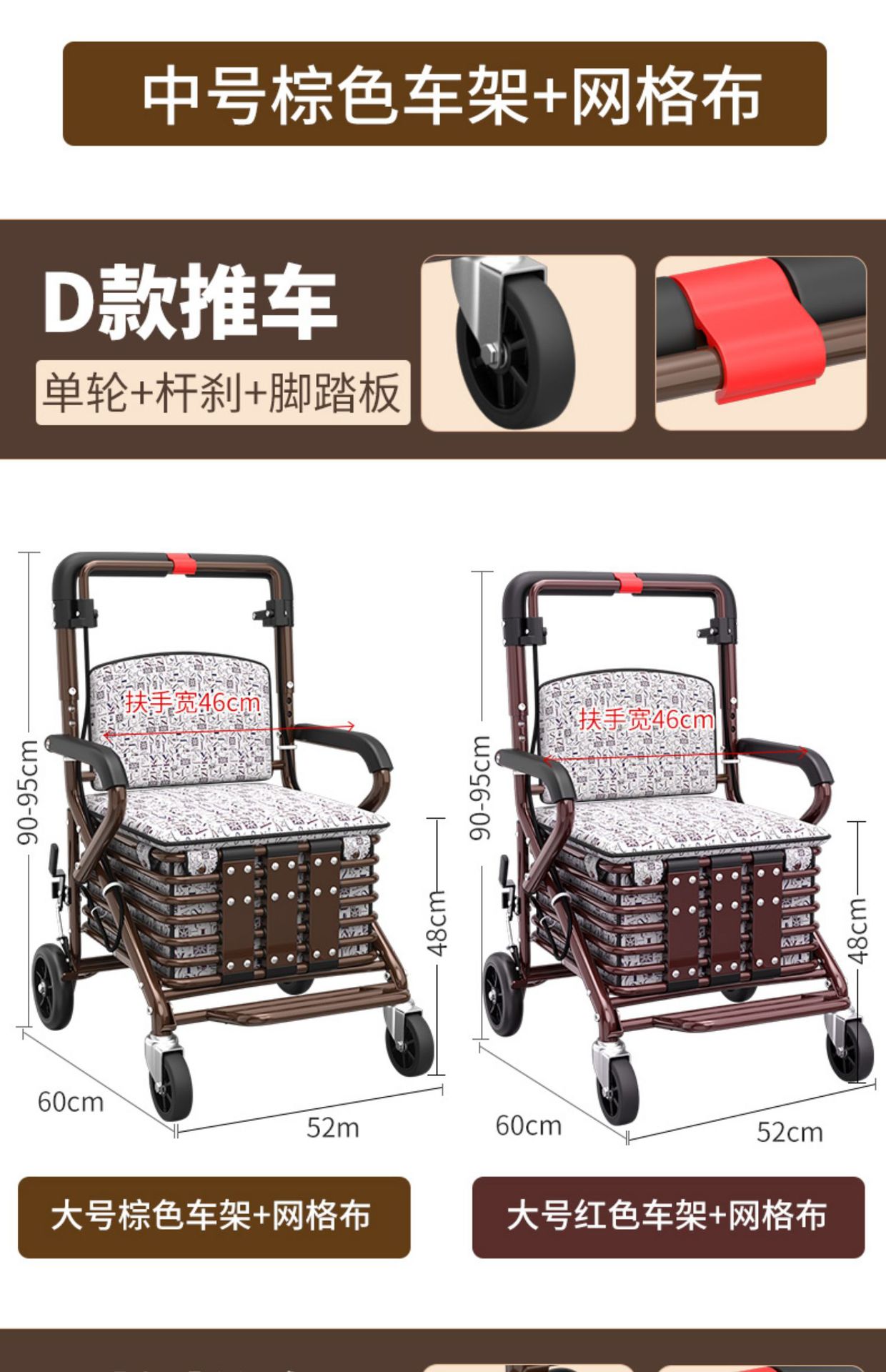 large pull rod brake front double wheel with pedal pattern letter cushion brown frame