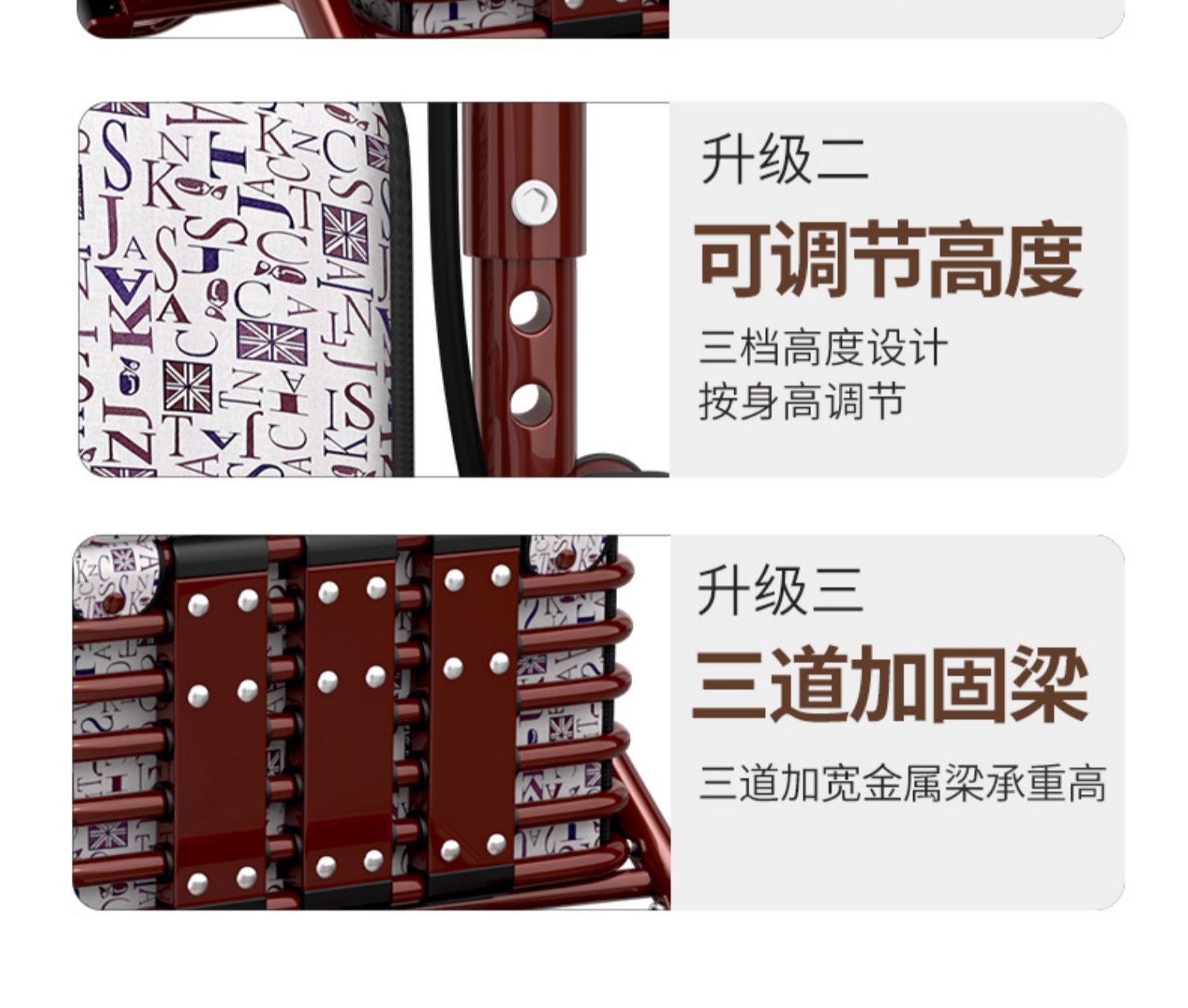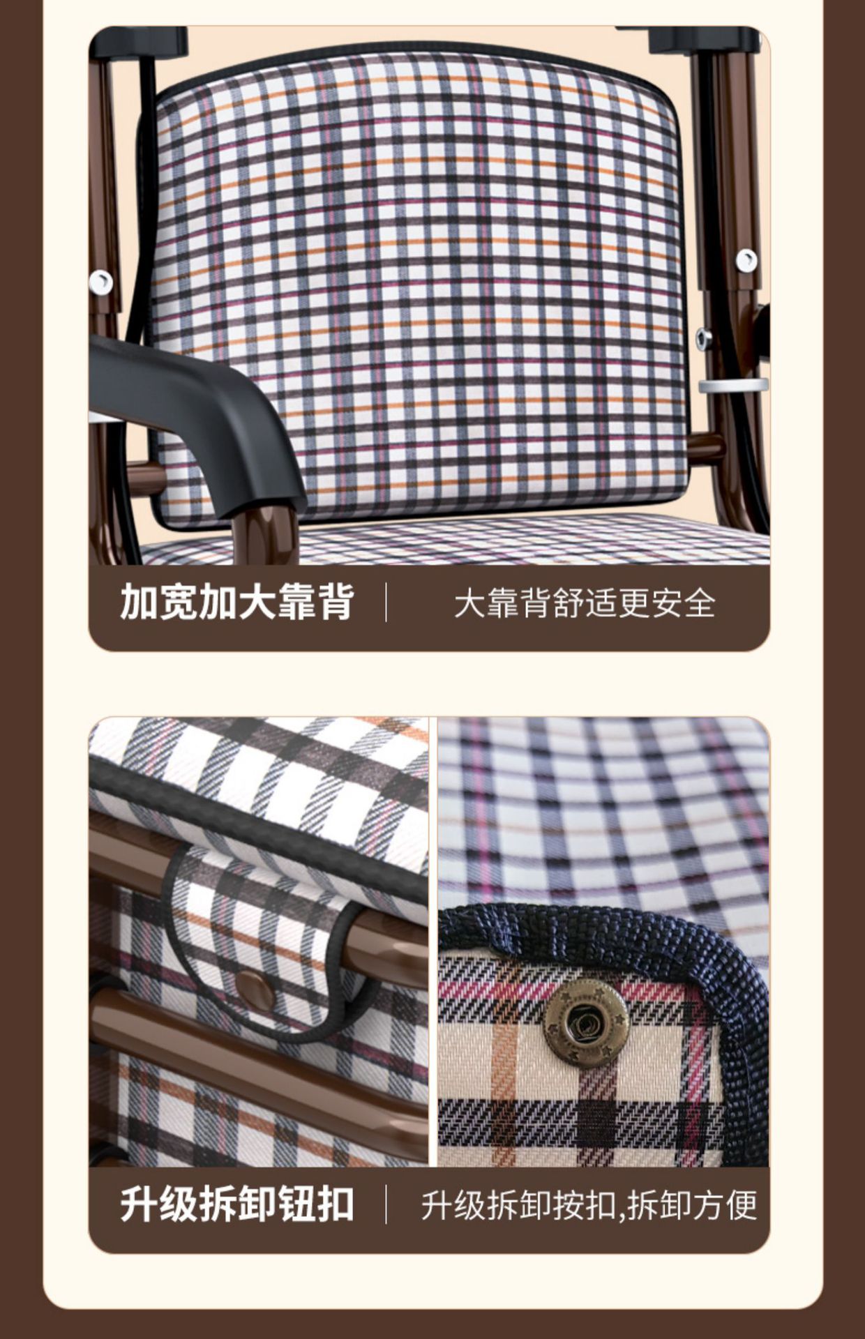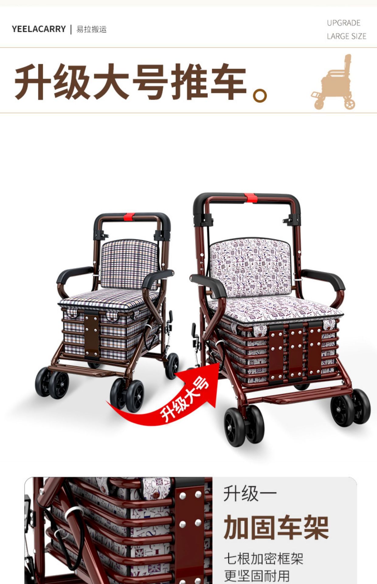 large pull rod brake front double wheel with pedal pattern letter cushion brown frame