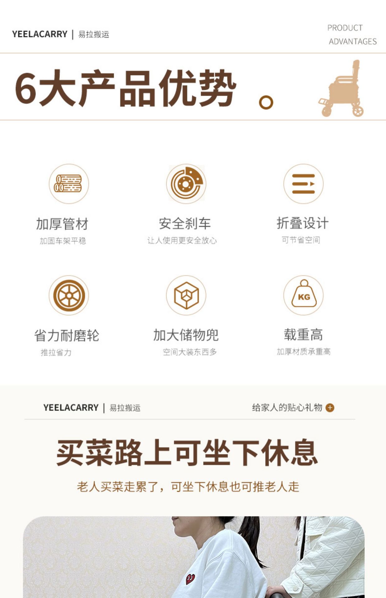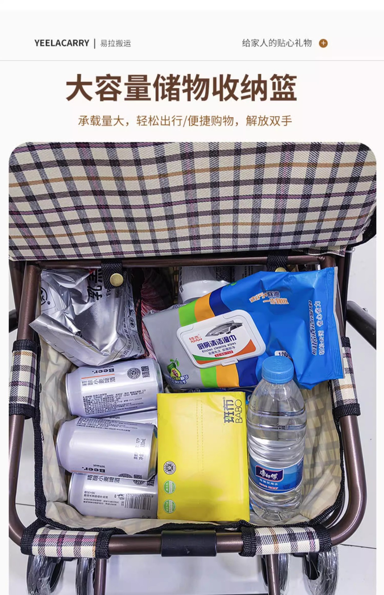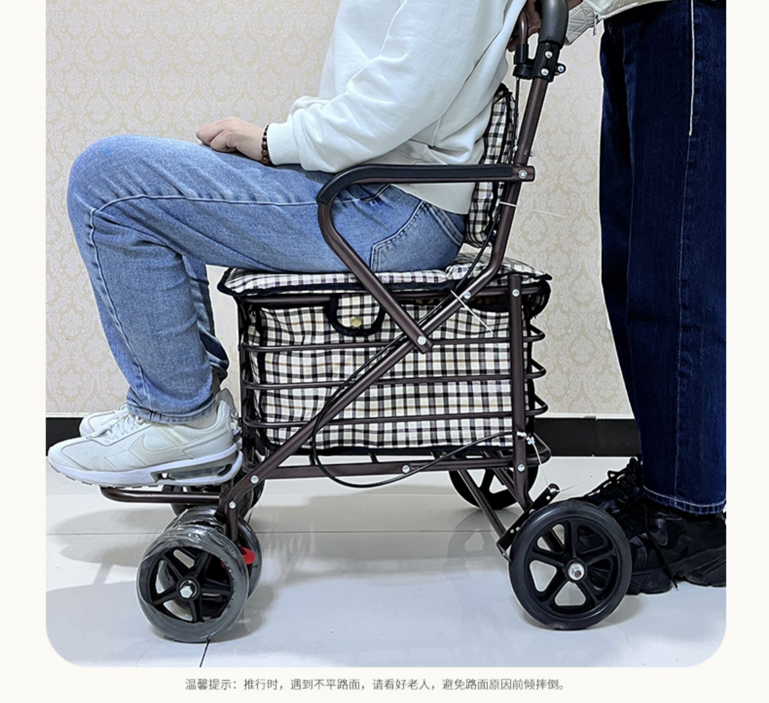 hot selling product pull rod brake front double wheel with pedal black and white plaid cushion brown frame