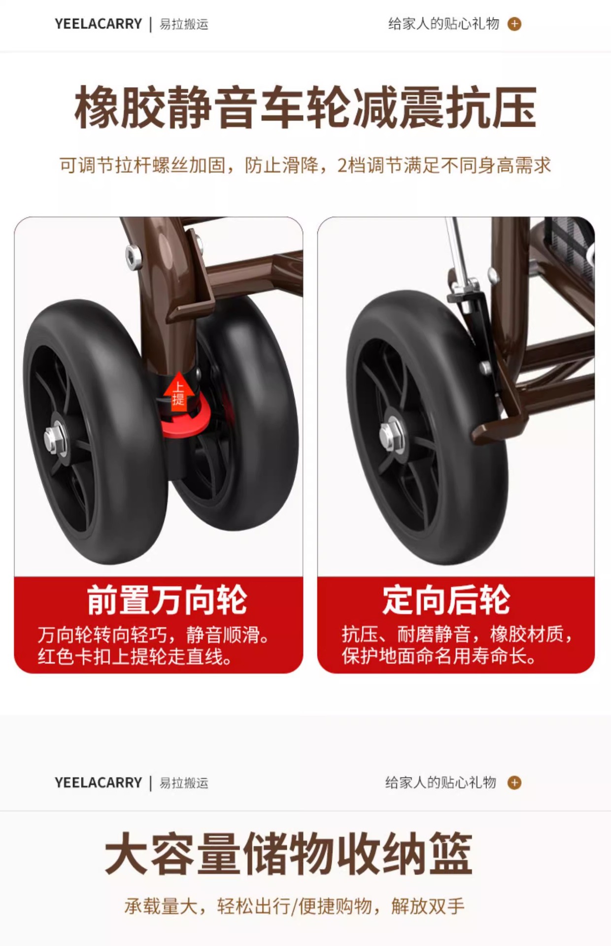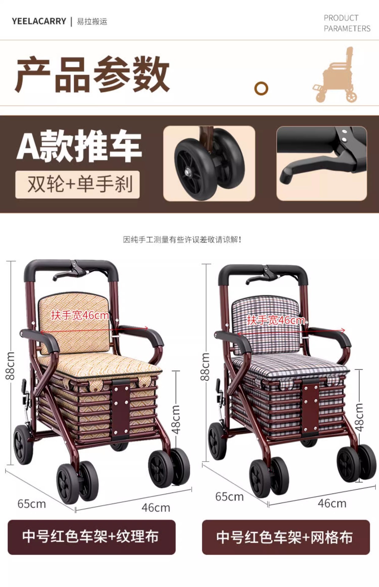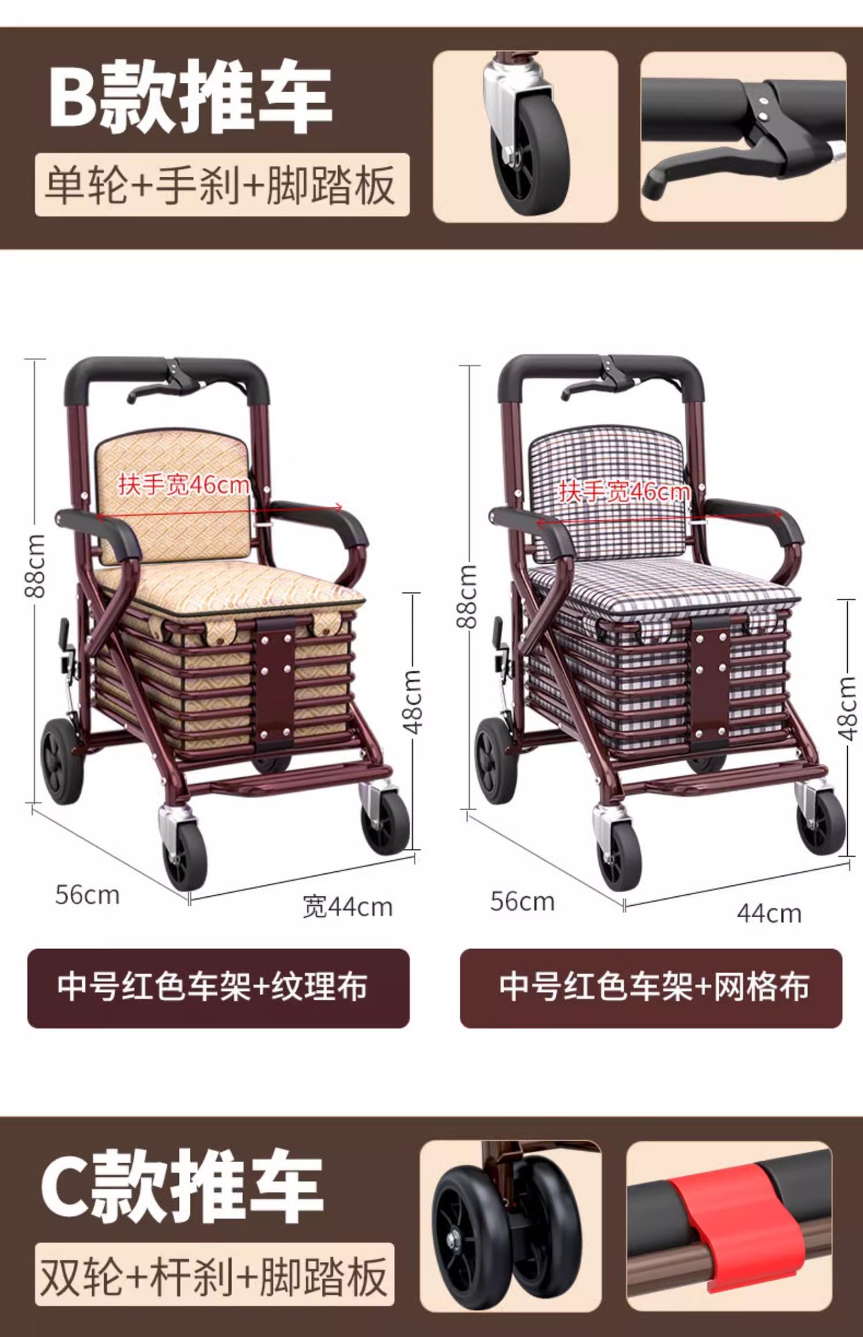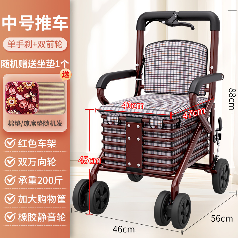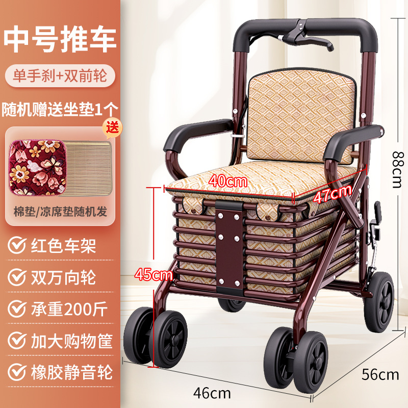 single handbrake front double wheel pedal-free golden cushion red frame