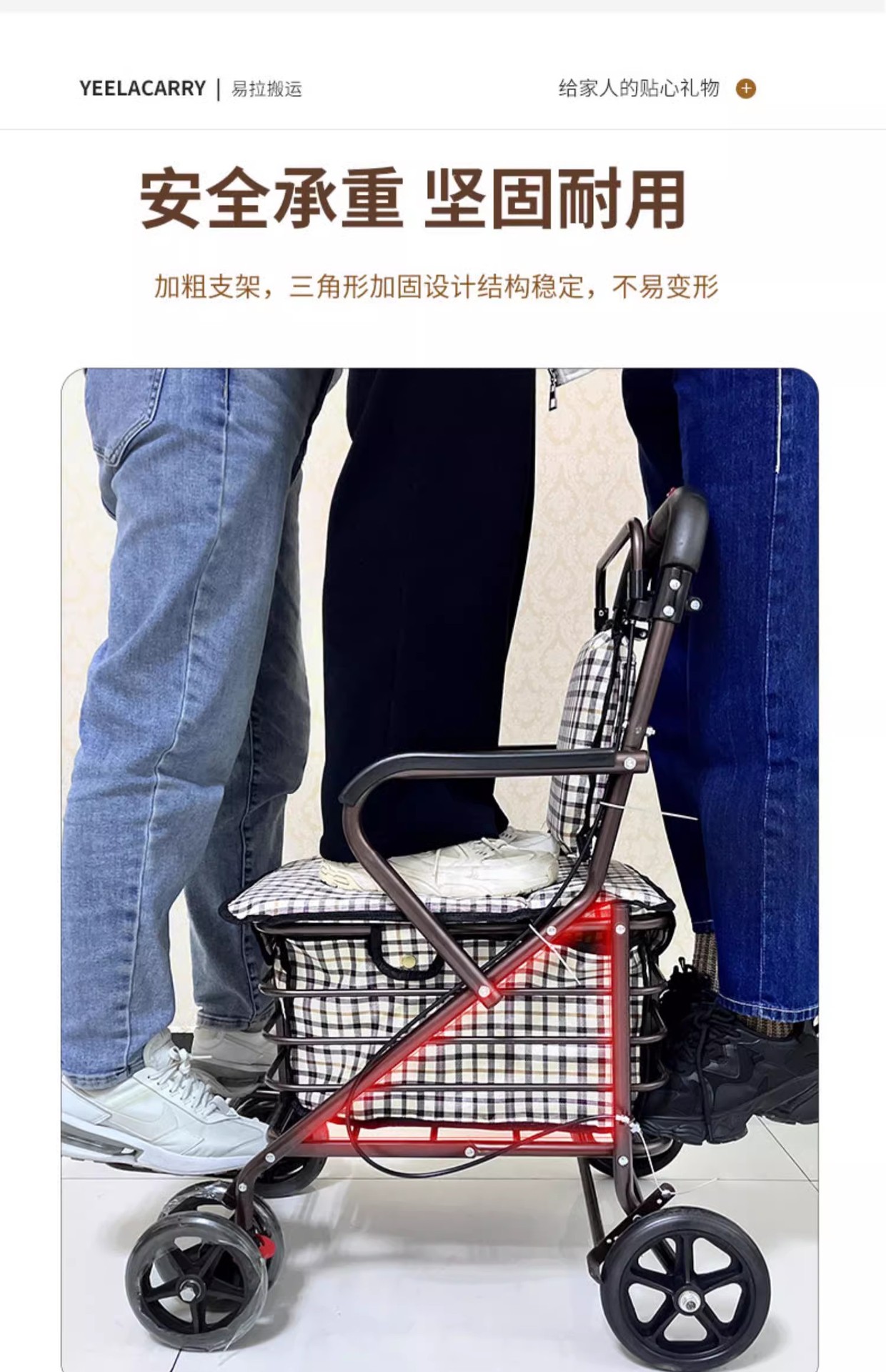 single handbrake front double wheel non-pedal black and white plaid cushion red frame