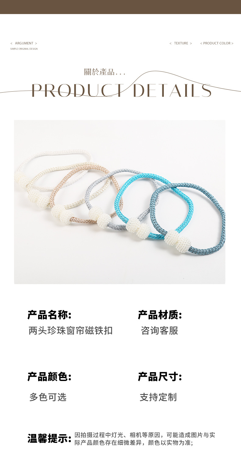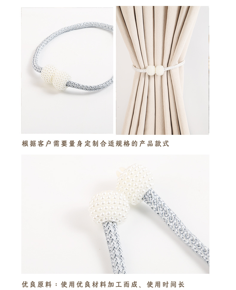 two-end pearl curtain magnetic buckle simple and modern decoration ribbon nail-free non-perforated curtain magnetic curtain drawstring