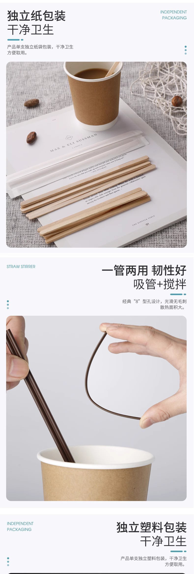 disposable coffee muddler baby milk powder stirring stick wooden long handle hot drink independent packaging honey stirring stick