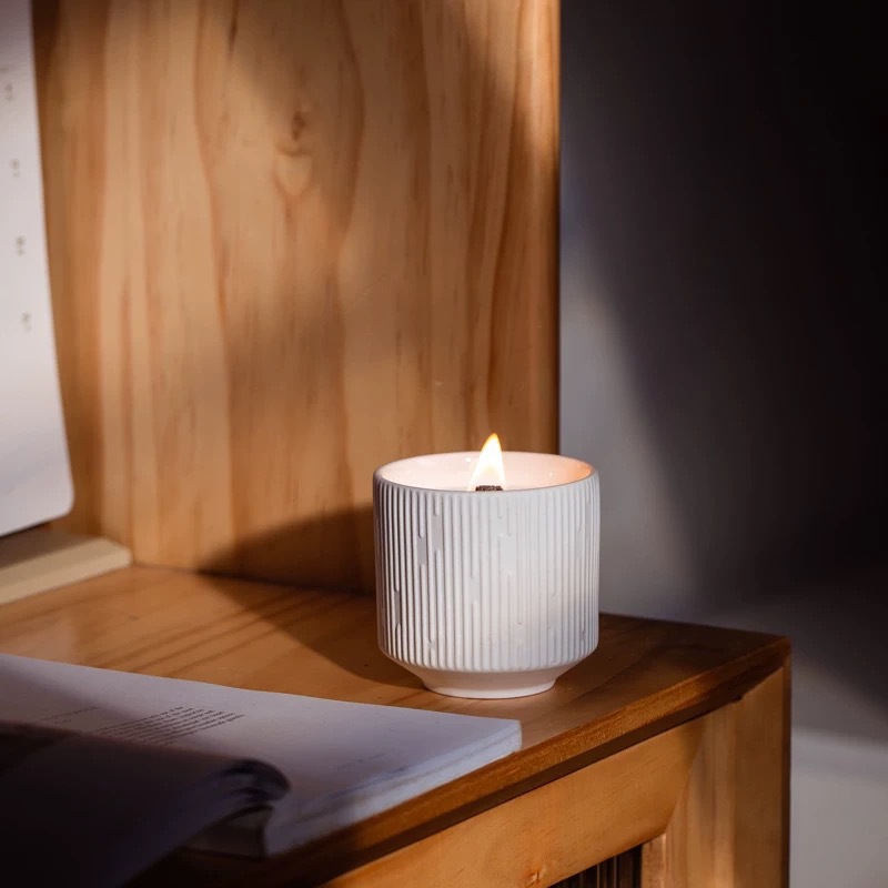 ceramic striped candle muru breeze