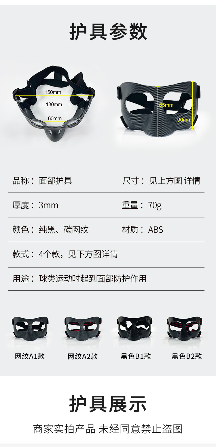 Factory Direct Selling Hot Selling Sports Protective Mask Polycarbonate Adult and Children Basketball Face Care Mask