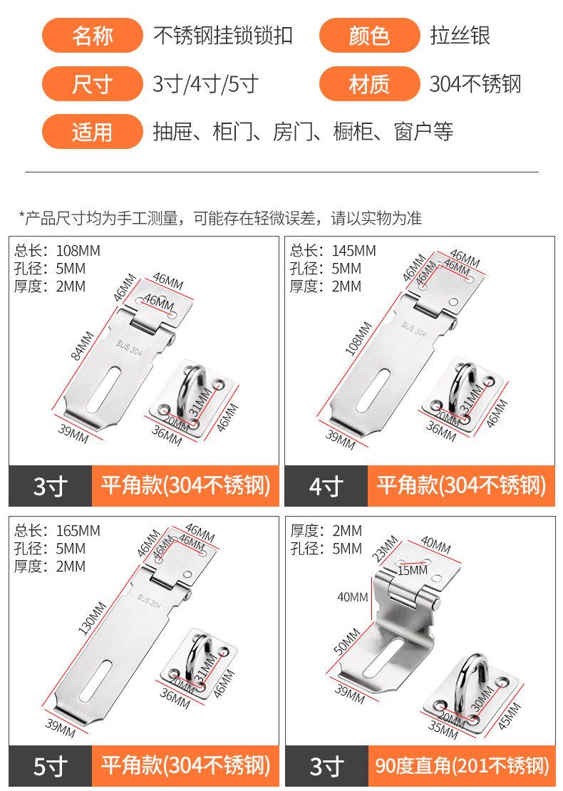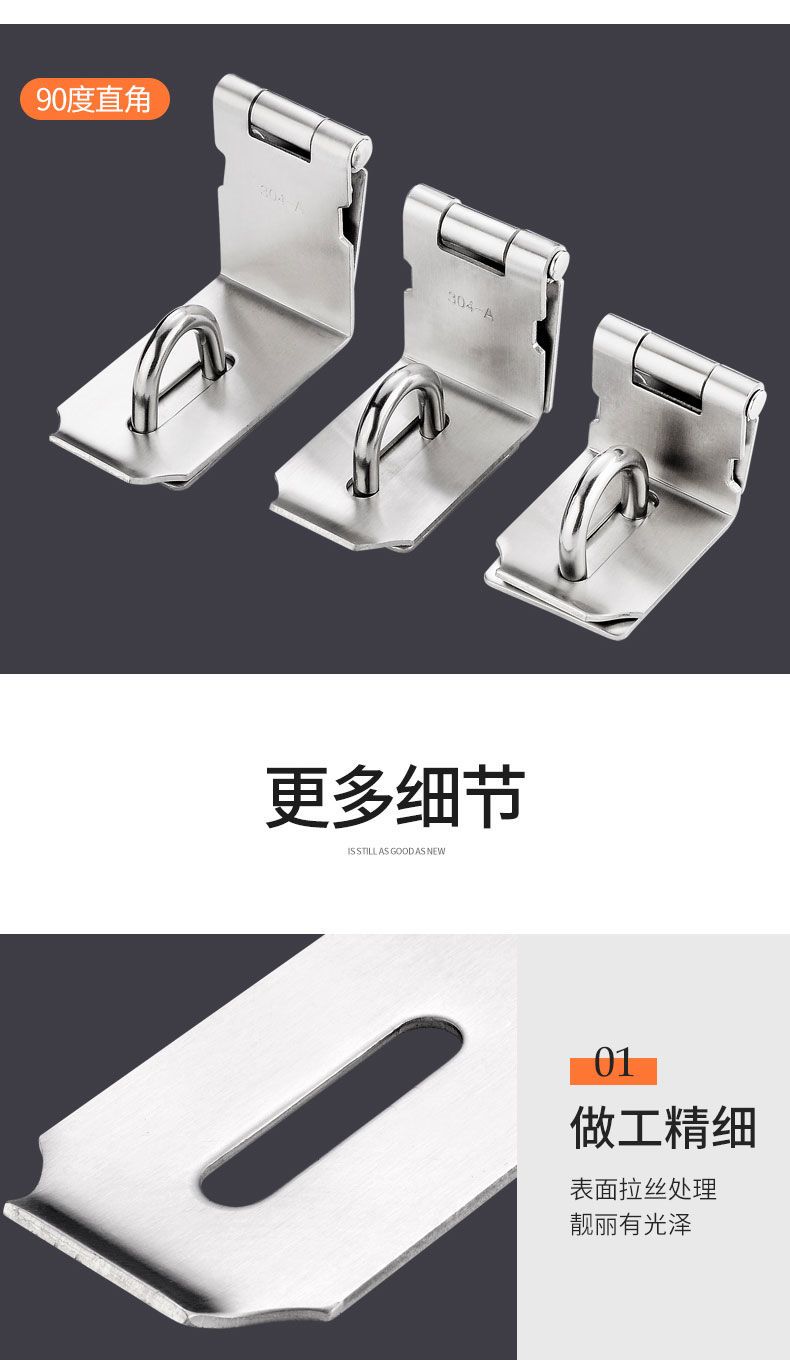 stainless steel door lock 90 degree right angle door hasp door nose bolt door bolt old-fashioned door lock punch-free buckle