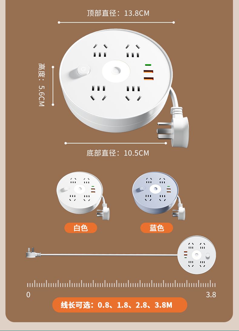 | blue +2 plug-in + usb + night light [winding] 3.8 m | CN¥ 32.83 | 999999 piece available |