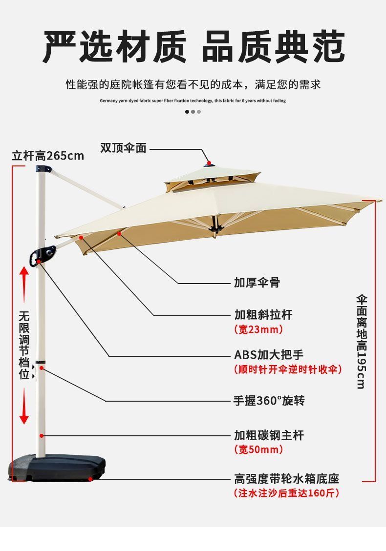 | led hydraulic luxury wind-resistant 2.5 m square + water tank | CN¥ 1220.69 | 999999 piece available |
