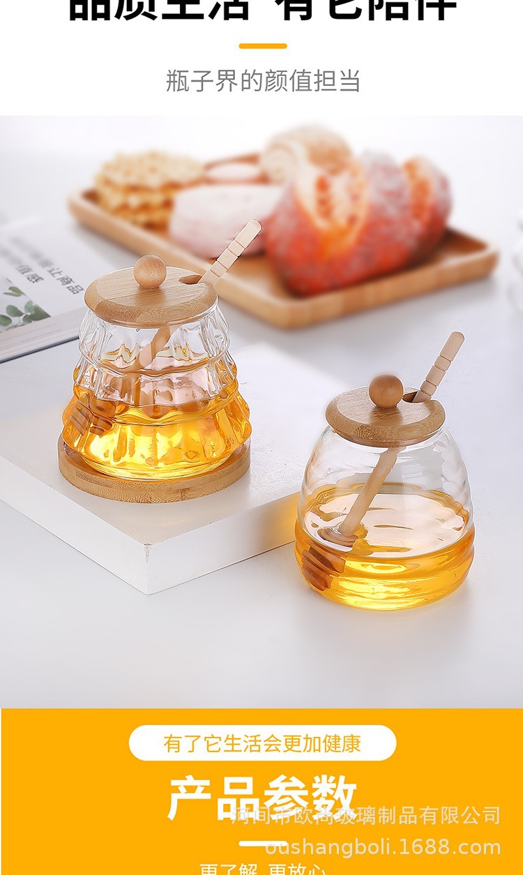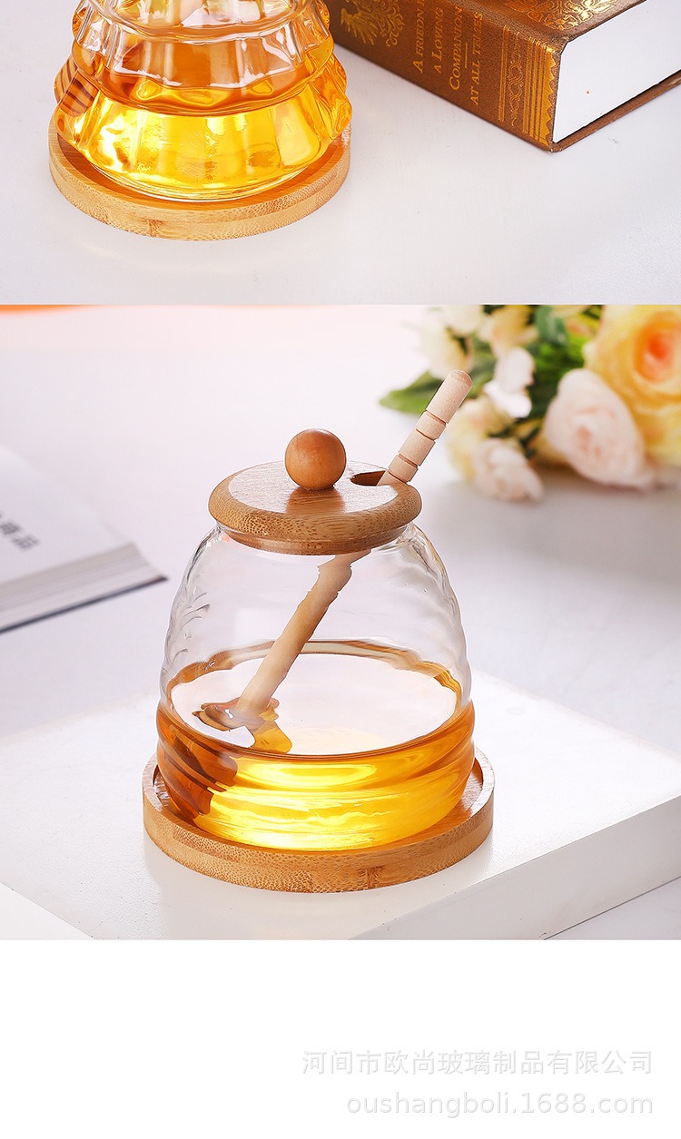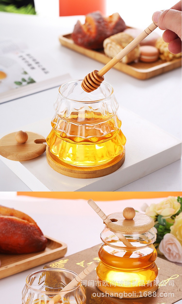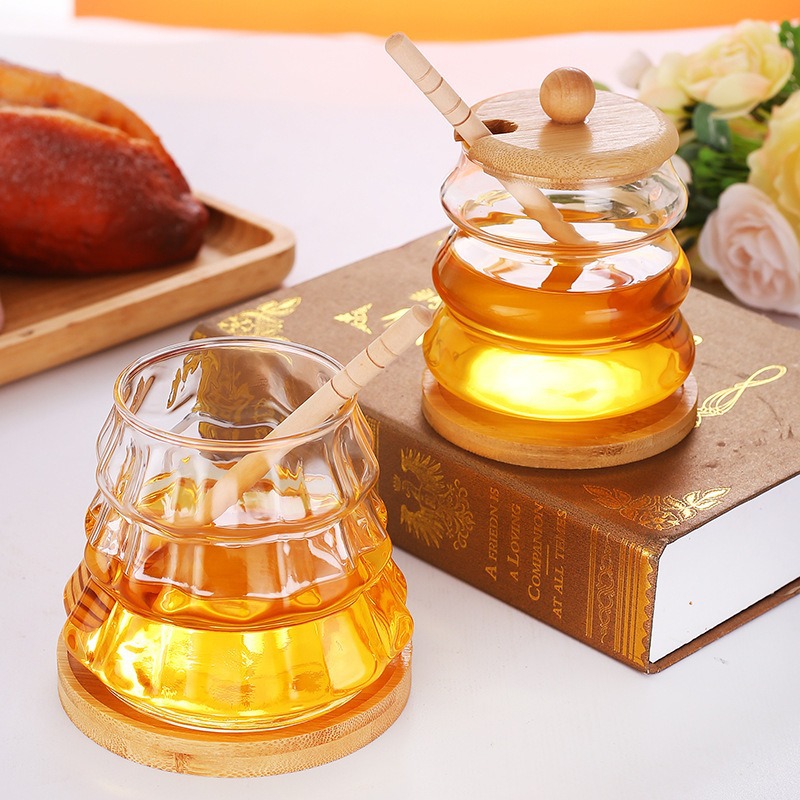 wooden lid honey pot household glass with lid wooden stirring sticks a bottle of honey borosilicate jam jar kitchen storage jar