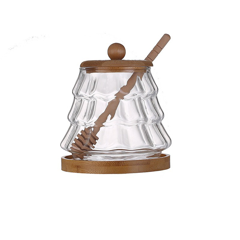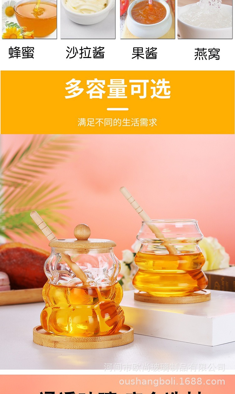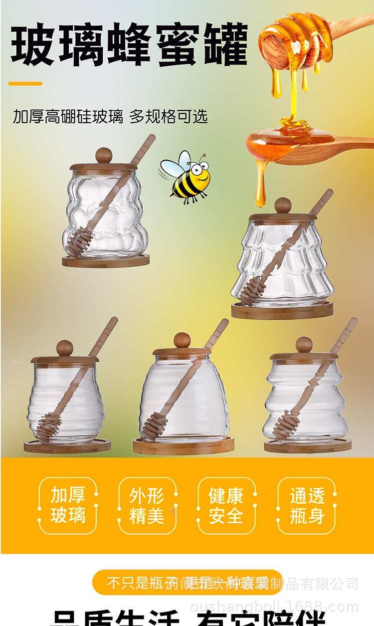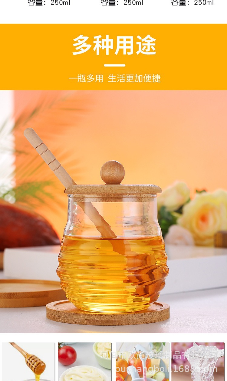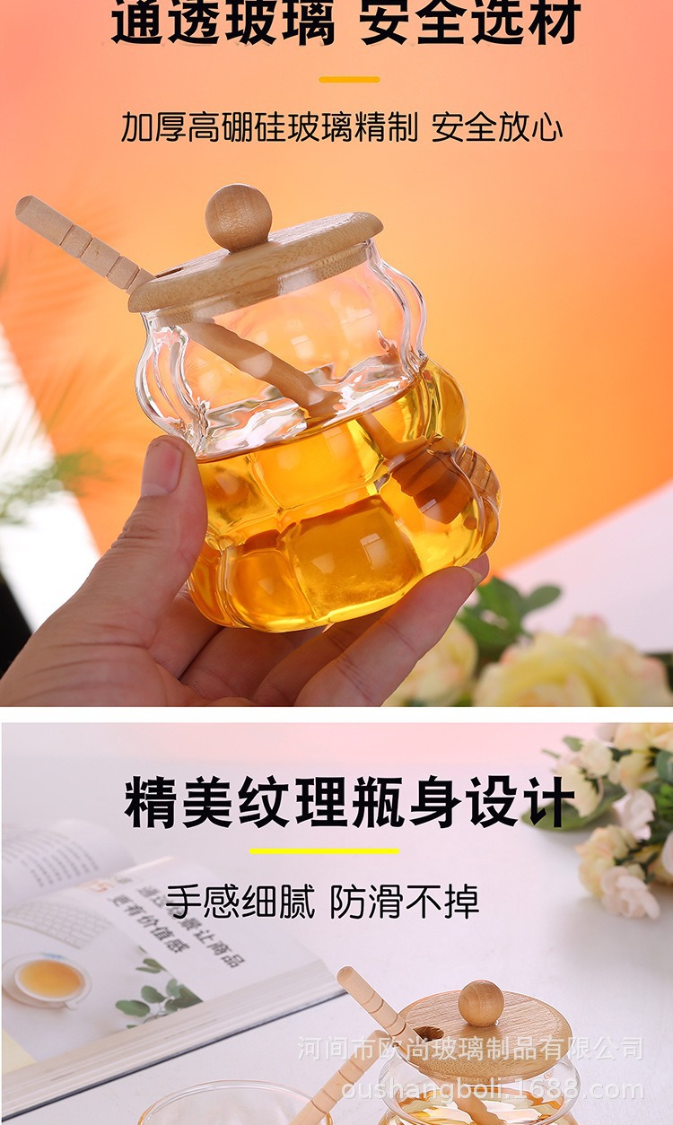 wooden lid honey pot household glass with lid wooden stirring sticks a bottle of honey borosilicate jam jar kitchen storage jar