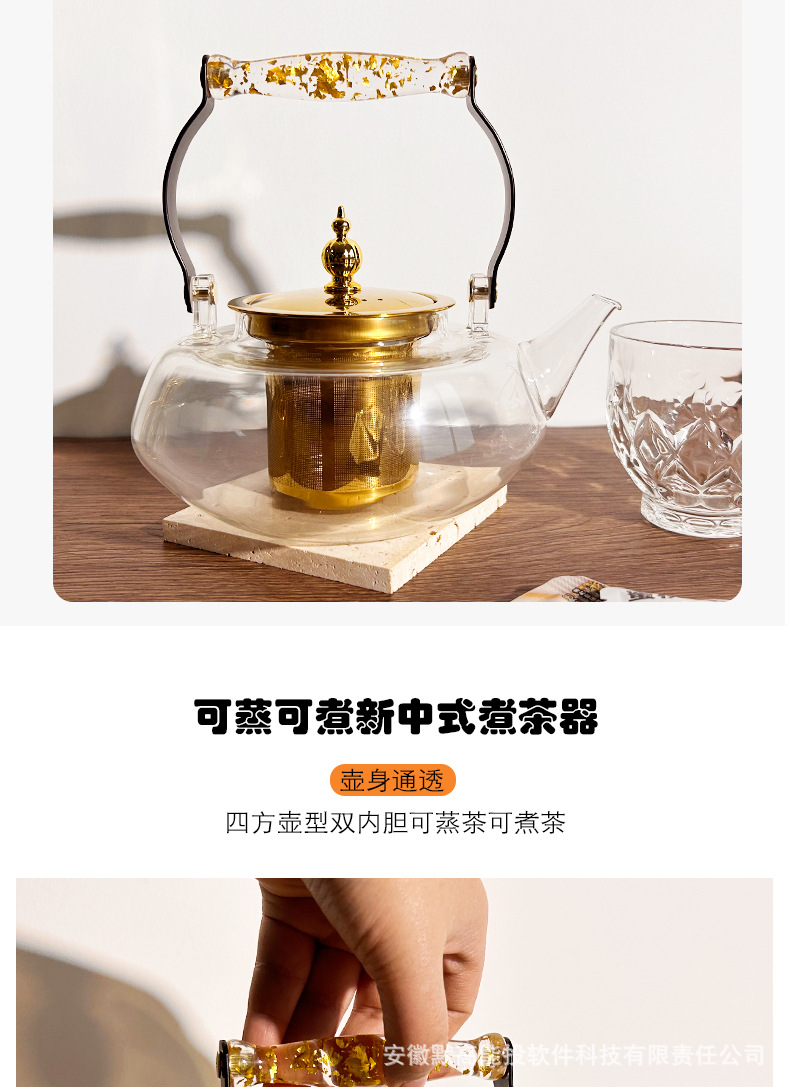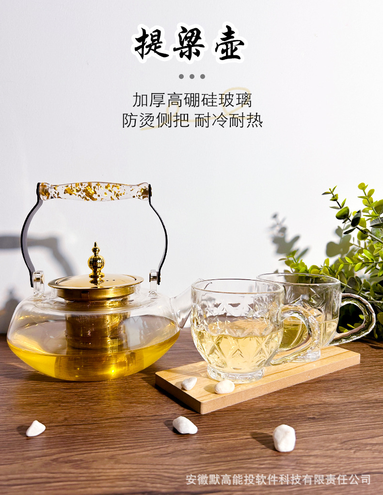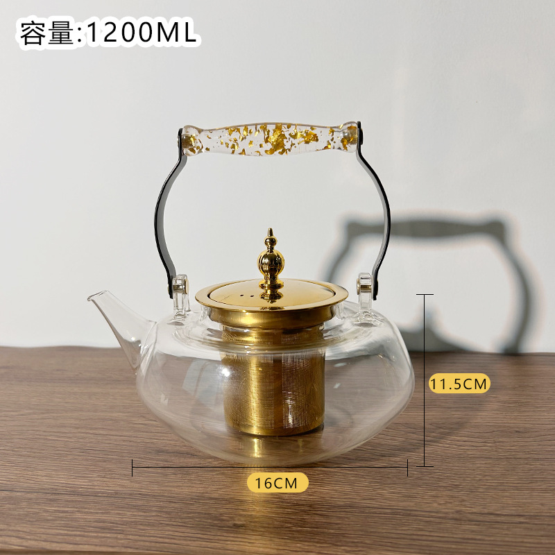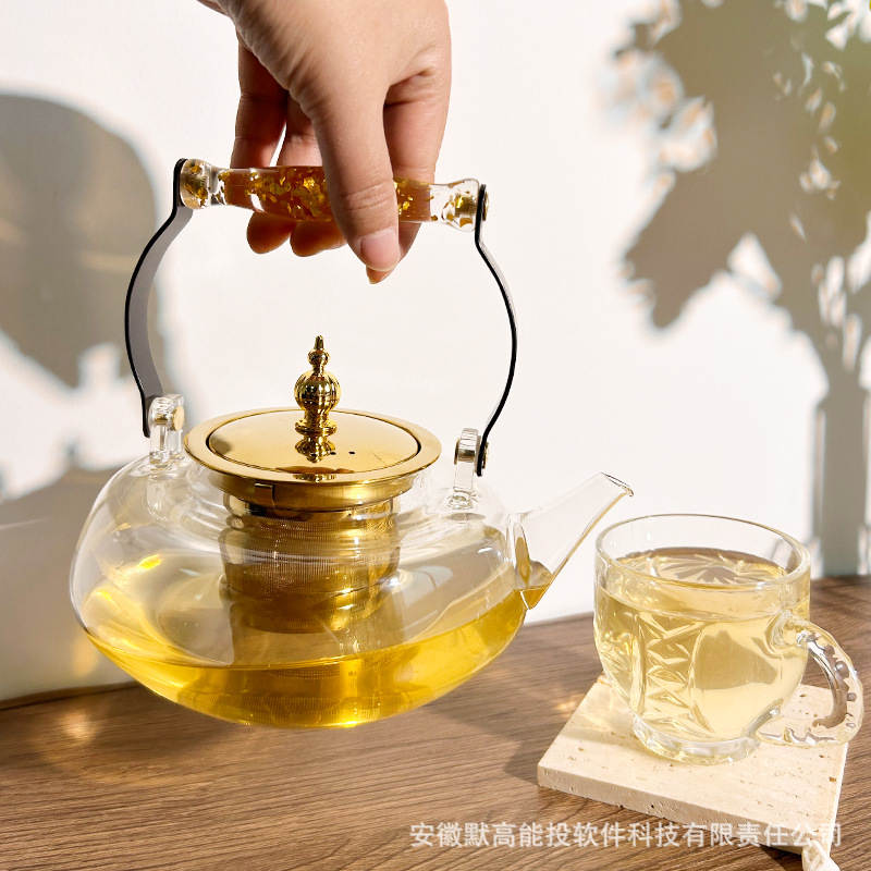 new handle loop-handled teapot thick stainless steel liner heat-resistant glass high temperature cooking induction cooker available health teapot
