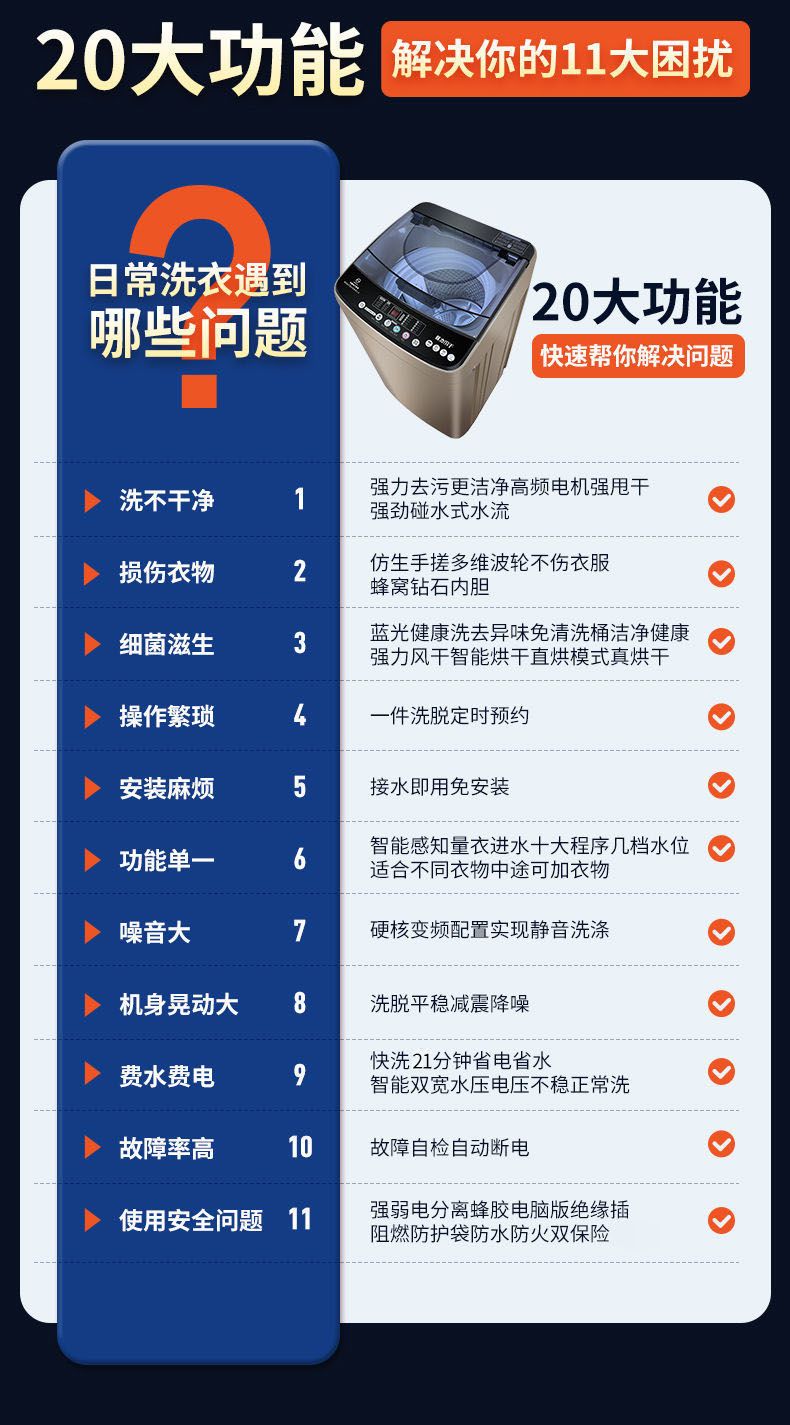 | 11.5kg smart cleaning and washing [new washing and protection anti-winding]] | CN¥ 528.12 | 999999 piece available |