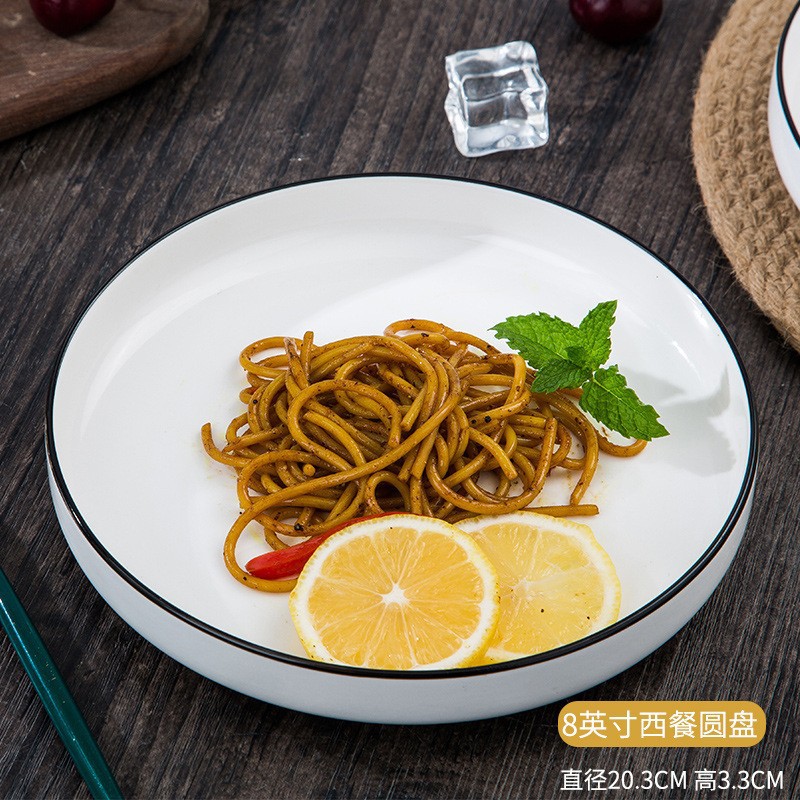 black line western food 8-inch round steak plate