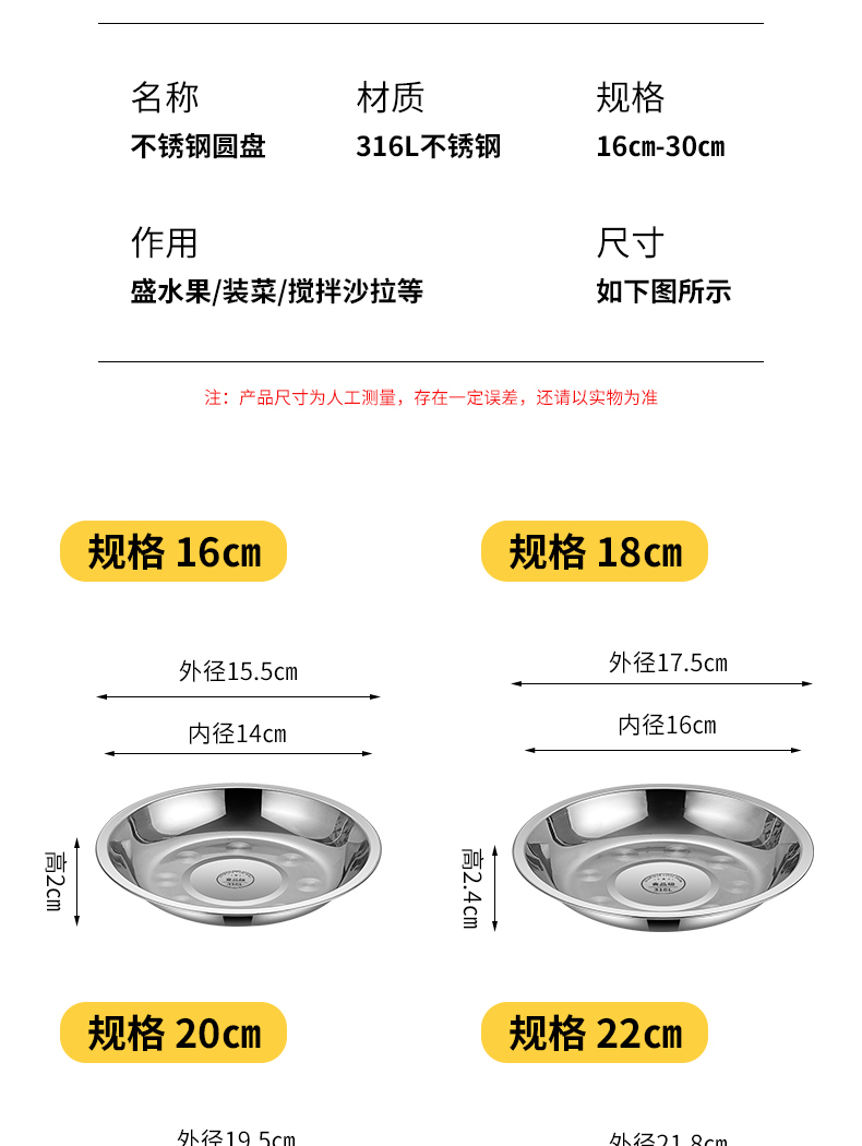 [extra thick] 304 stainless steel round plate 22cm