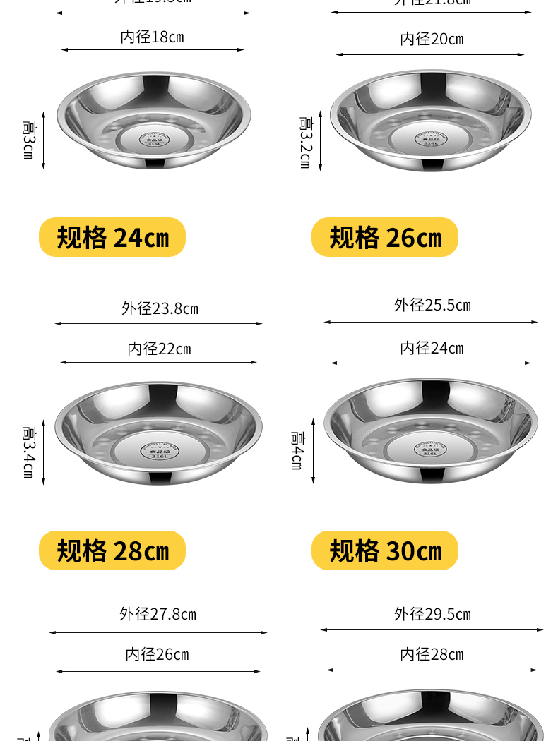 [extra thick] 304 stainless steel round plate 18cm