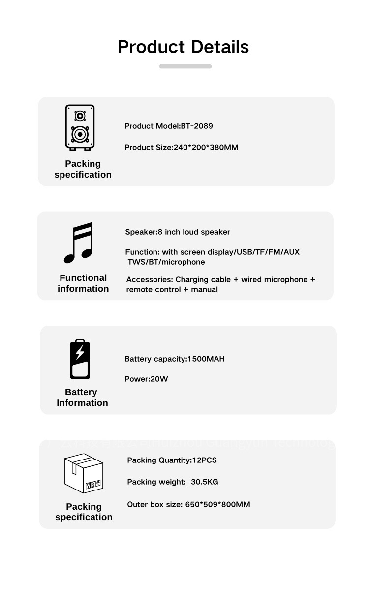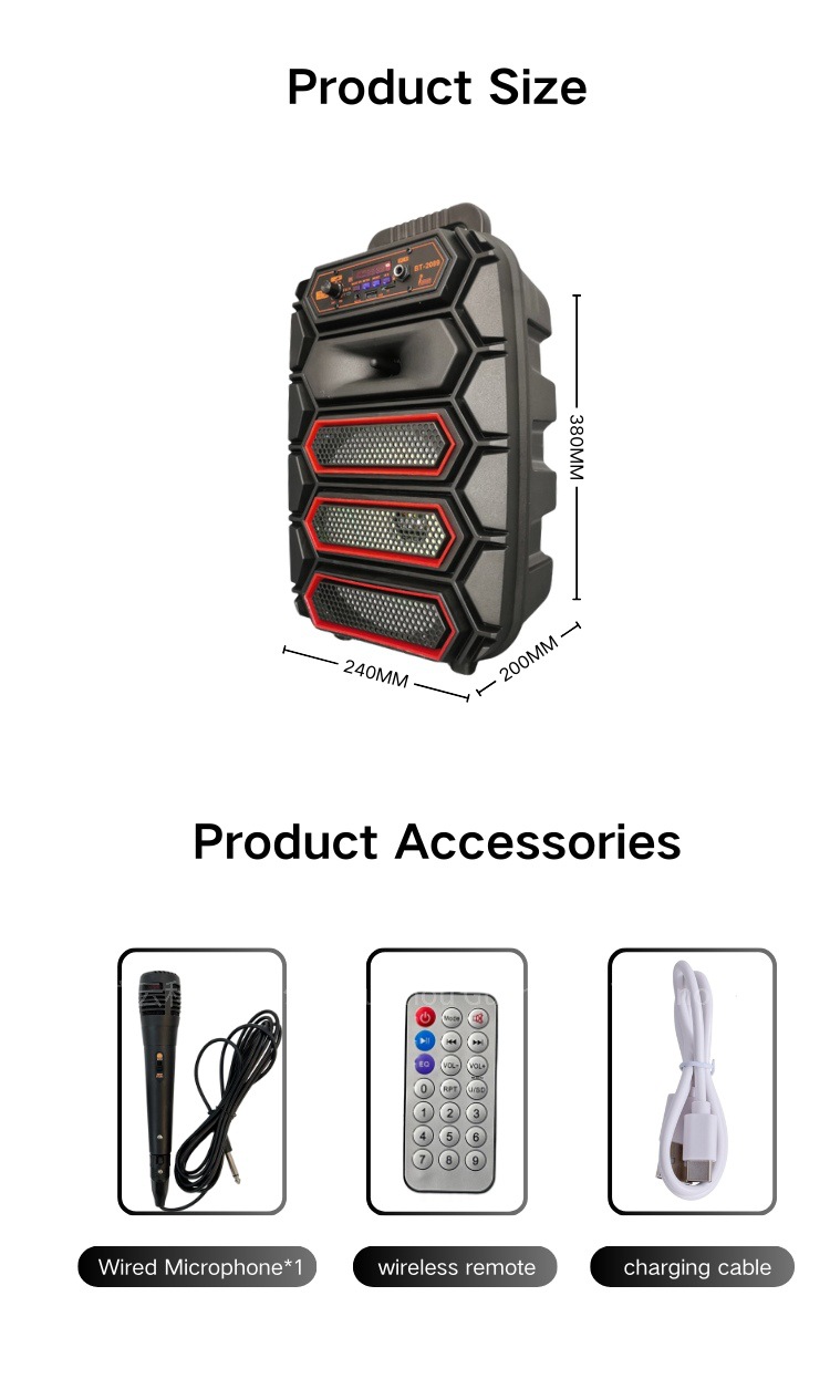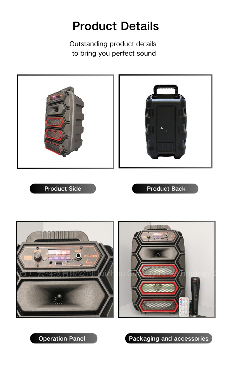 cross-border direct supply 8-inch portable bluetooth audio outdoor mobile bt-2089 portable box speaker foreign trade export