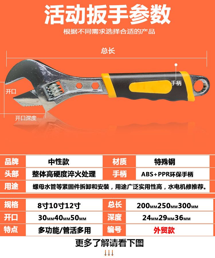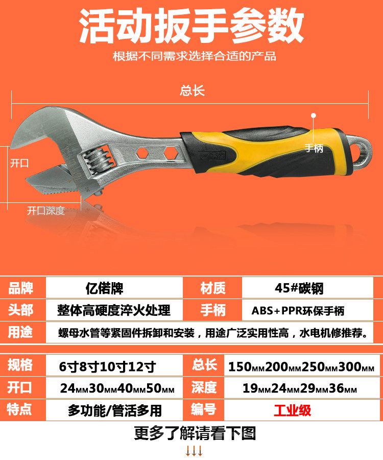 | 8-inch tube live multi-purpose adjustable wrench [industrial grade] x1 handle | CN¥ 13.88 | 999999 piece available |