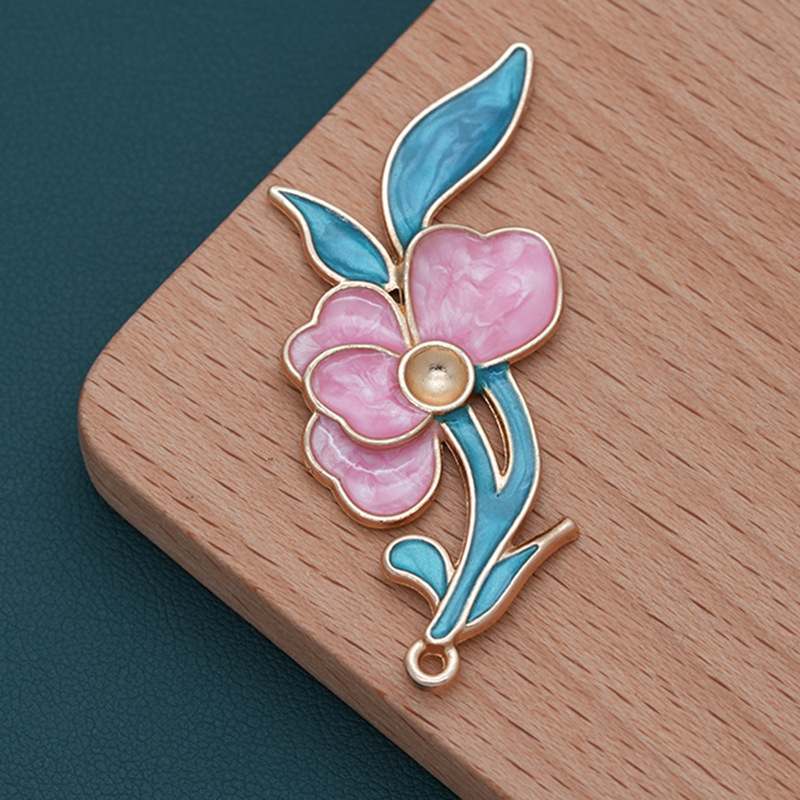single hanger drop oil single bead flower branch cloisonne pink