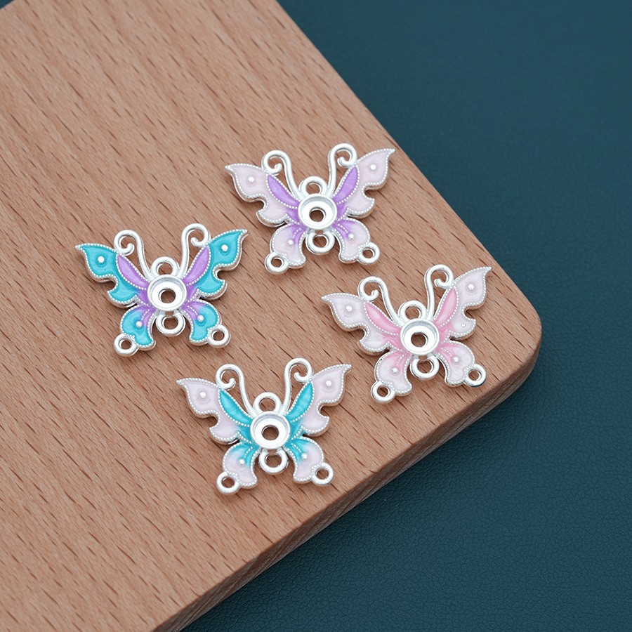 dripping oil multi-hanging single bead cushion long beard butterfly silver background pink blue