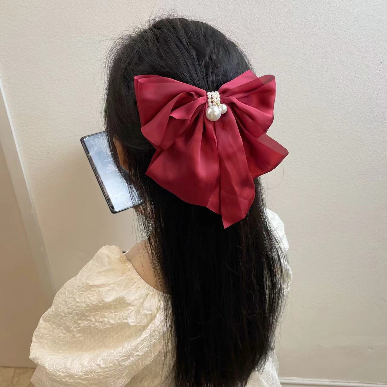 a pair of hairclips red